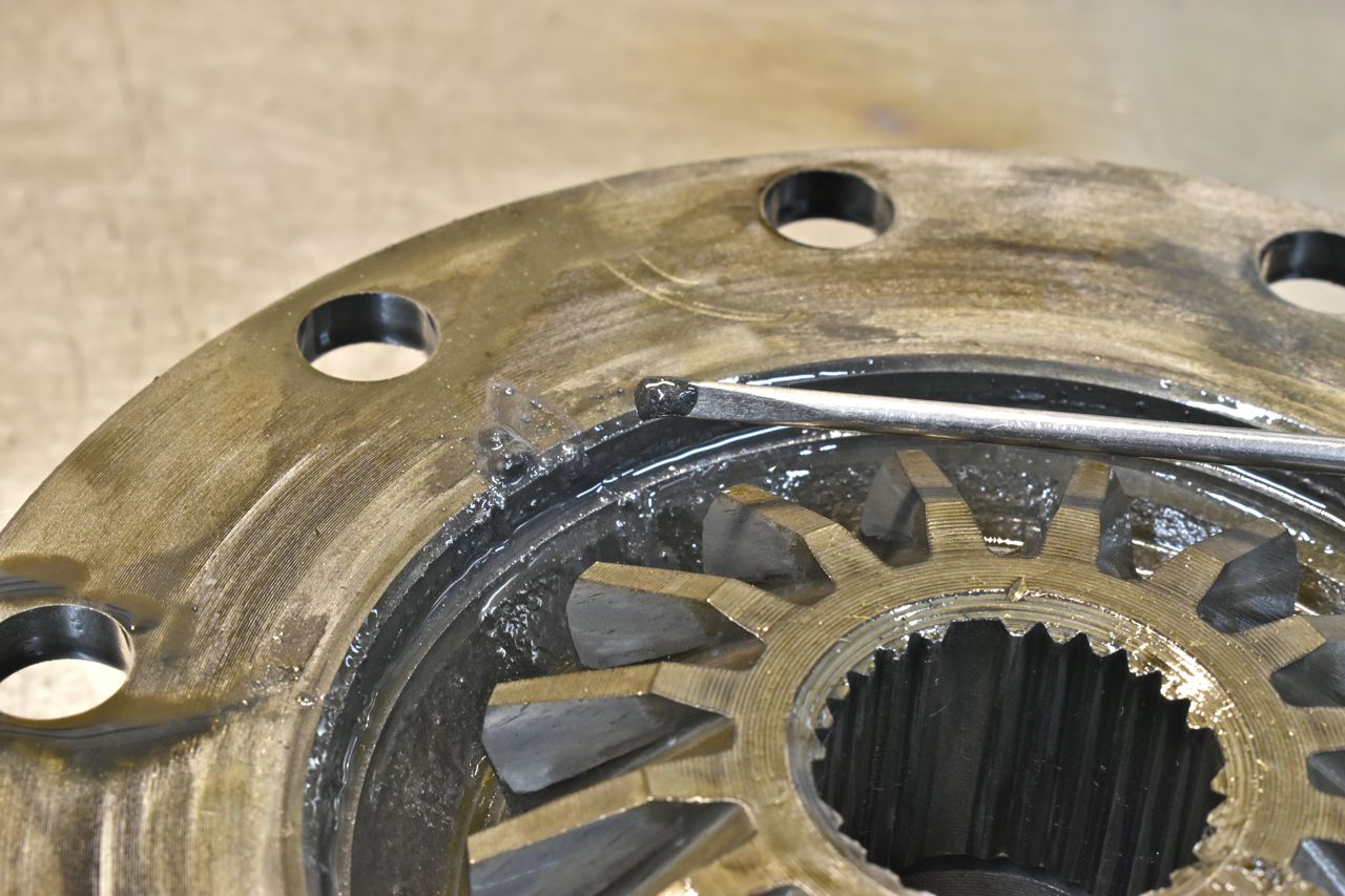 You can see quite a bit of the old nasty sludge oil lingering inside the differential.