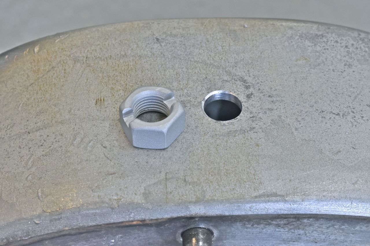 So here's the plan. A grade 8 nut with slots cut into it for drainage, then welded inside the housing.