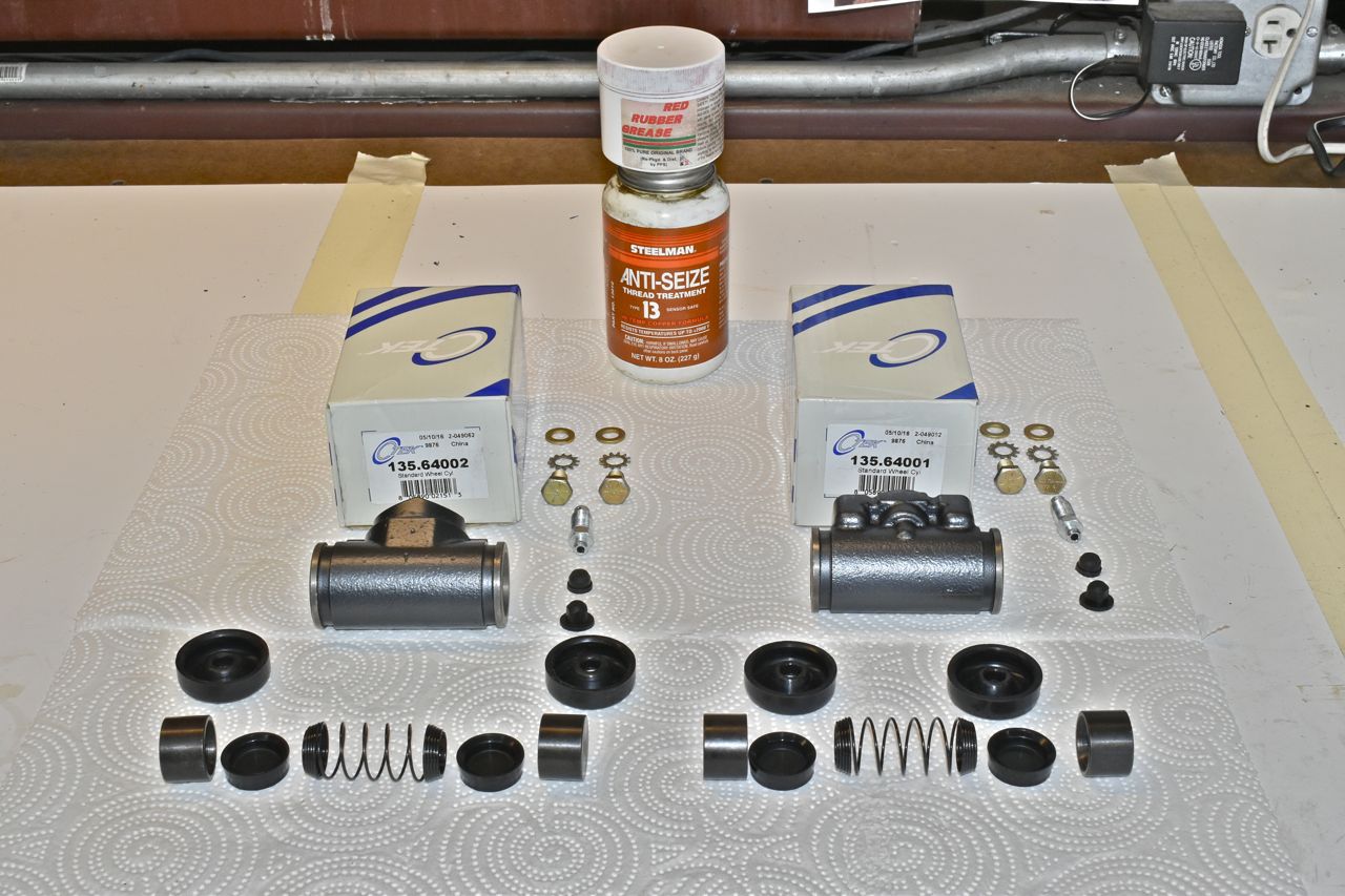 Next up is installing the brakes. I might as well test fit everything and assemble them even though the parking brake cables will be used later upon axle installation. I disassembled and cleaned the wheel cylinders as well as powder coated them for corrosion protection.