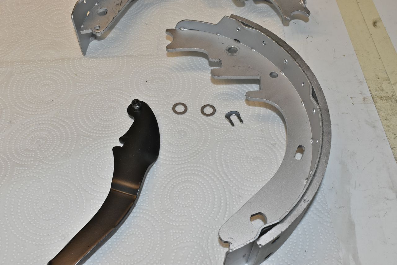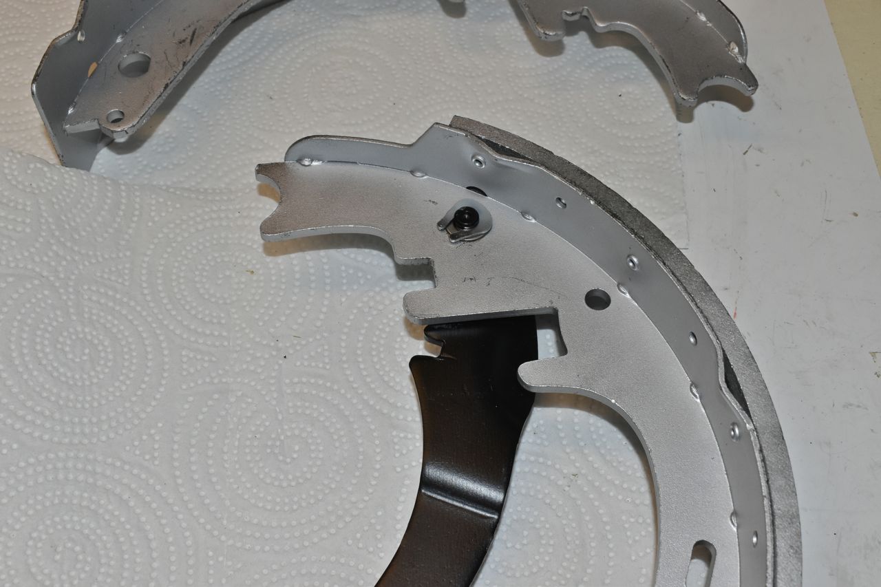 Even old NOS parts are not immune to mistakes. Whomever relined these shoes mixed up the primary metal arch and the secondary lining and mated them. The result, whilst subtile, is that the parking brake lever will not fit into the required hole as they purposely made the holes smaller so you do not mix up the primary and secondary shoe location. The metal support will need to be drilled for 3/8"
