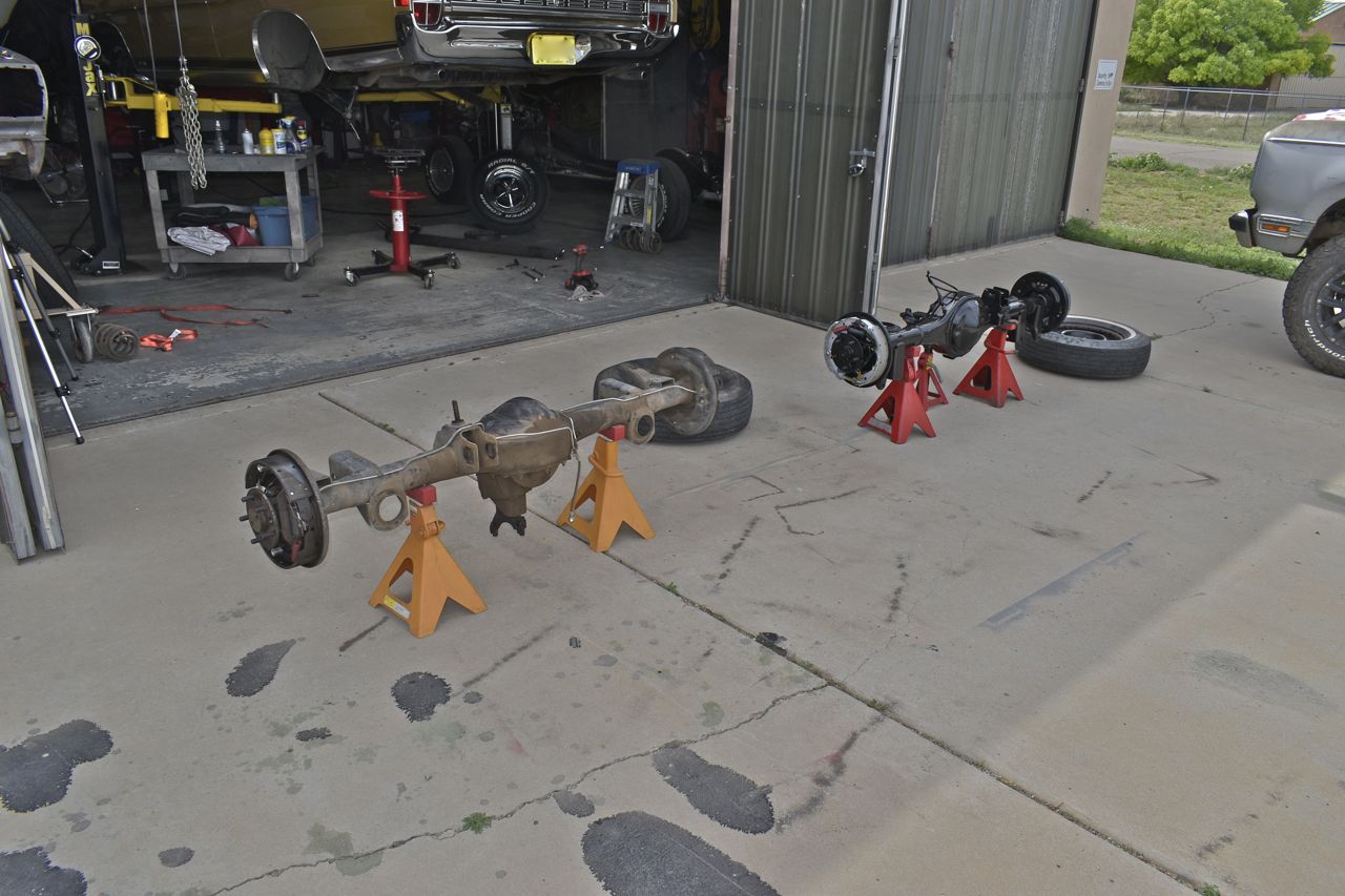 Spent and overhauled axle. Just had to transfer the new rear brake hose and stainless steel lines from the spent axle to the overhauled one.