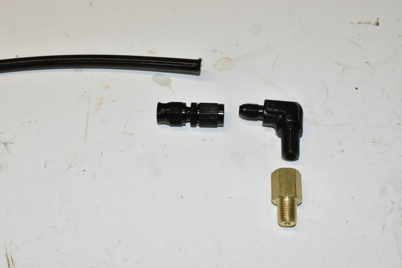 The PTFE AN automotive grade hose takes an olive/ferrule to secure the hose on properly. Now obviously this is high pressure line and well and truly overkill for a vent line. However I wanted to see how well the hose exterior holds up to under car exposure. Remember this is daily driver and not a car that is Sunday's only. It will see service like a new/er vehicle and must hold up like one.