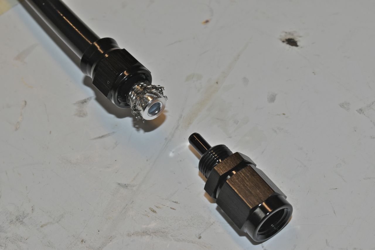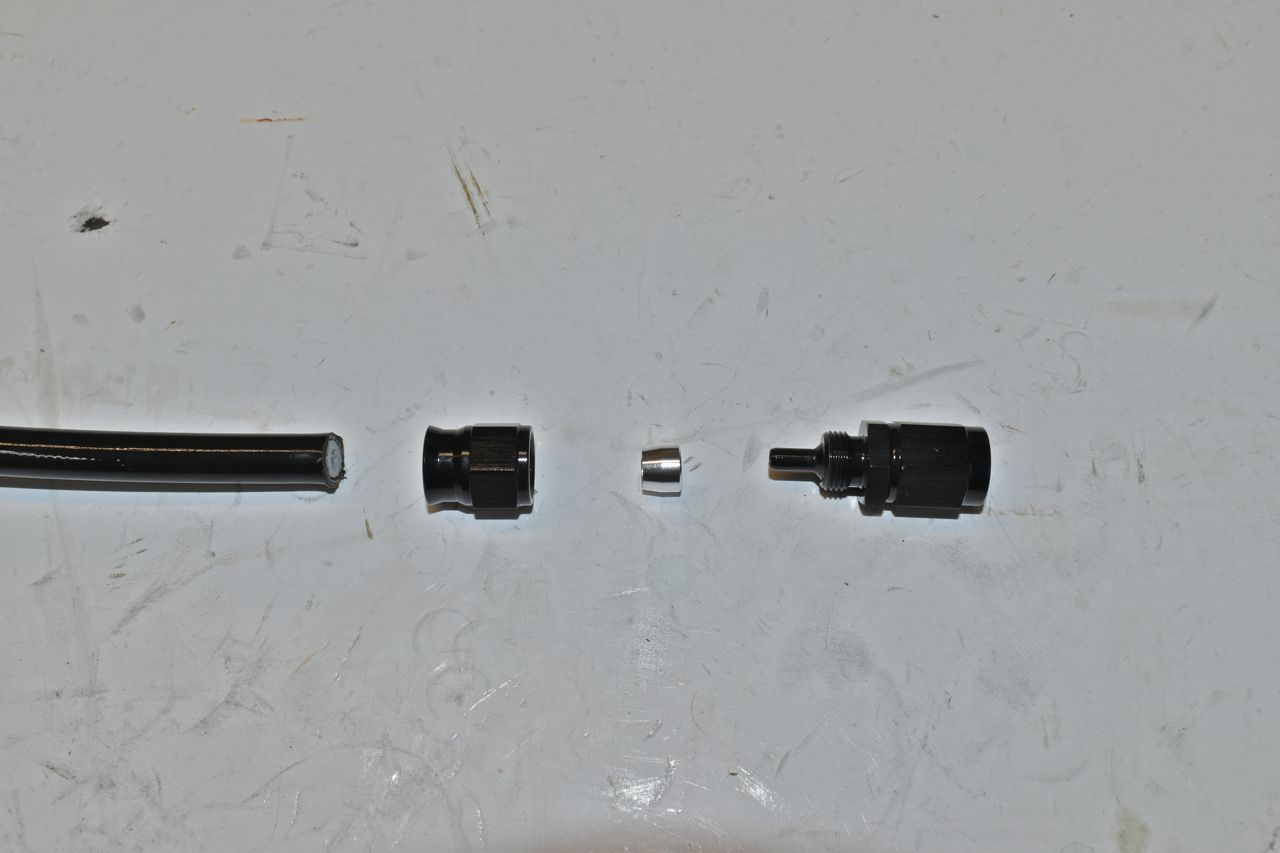 Slide up the fitting into the PTFE liner and bring down the nut and screw together until there is about 1 mm between the nut and fitting. You can make these hoses up for custom brake line fittings. However I don't think I would. I would use the FAA hose and fittings for your own brake lines as these items are extensively tested, unlike the automotive grade AN hardware.