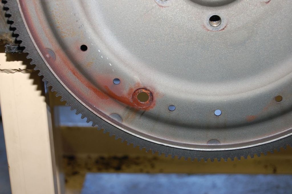 Looks like someone had a bad day on the assembly line and didn't tighten the torque converter nut fully. This flexplate will be replaced.