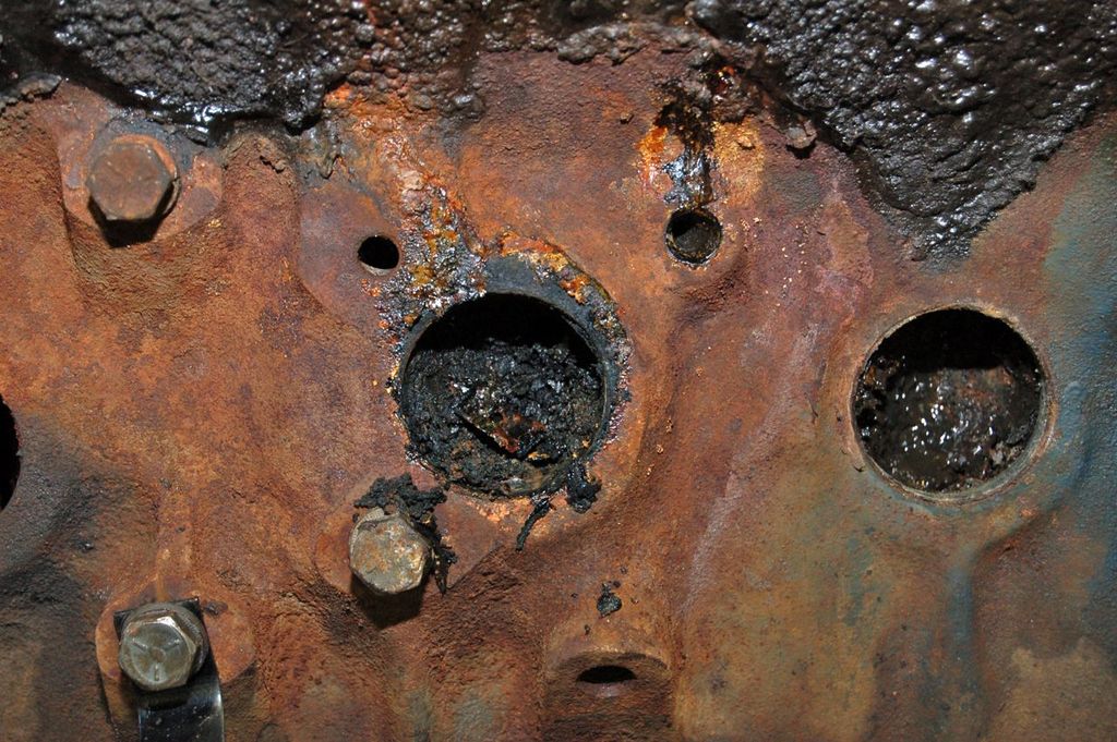 Wow, I've never seen the lower coolant passages so plugged. But it's what happens when an engine sits for long periods. Even if it didn't leak from every possible orifice, it would not be reliable if made into a driver.