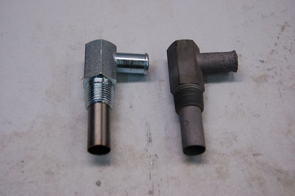 I couldn't find a replacement heater hose fitting at the time, so I had to make a replica with parts I could find.