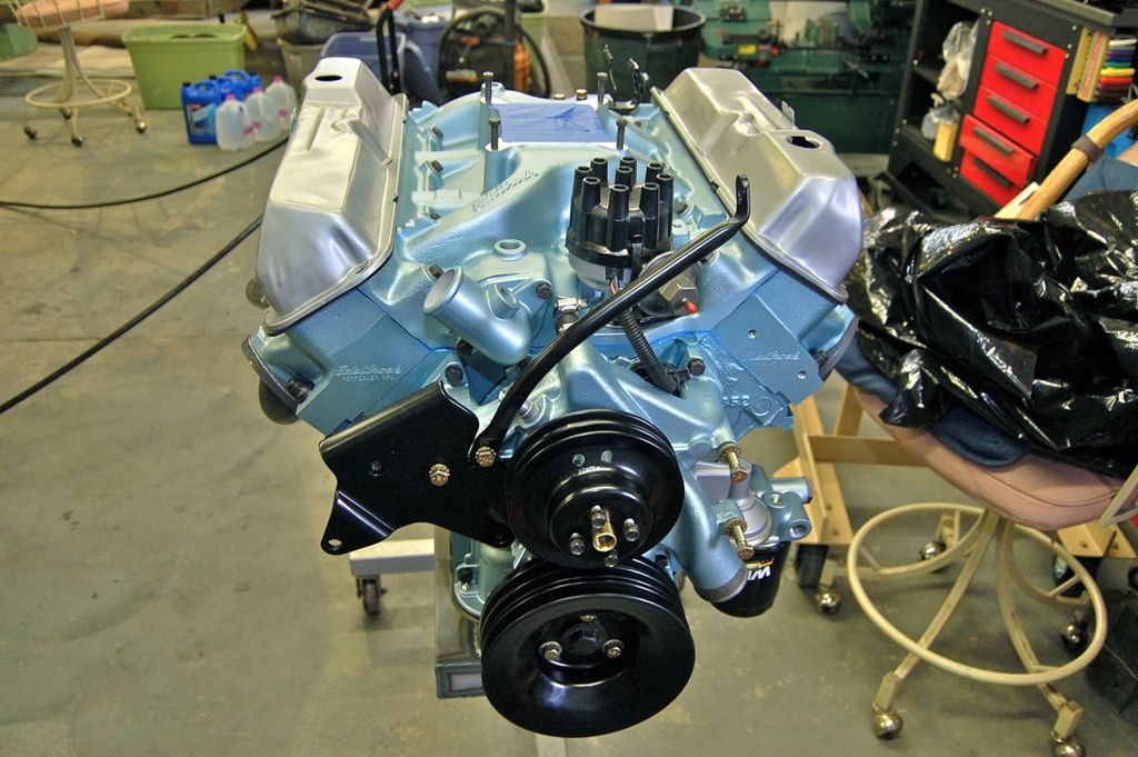 Another note, I lost some of the pics during this, the alternator and PS pump were among the lost. The alternator I rebuilt, because I wanted to keep the old style case, chances are with a rebuilt I'd end up with the later style.