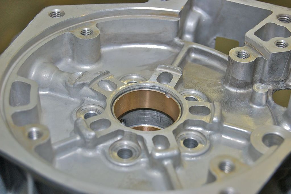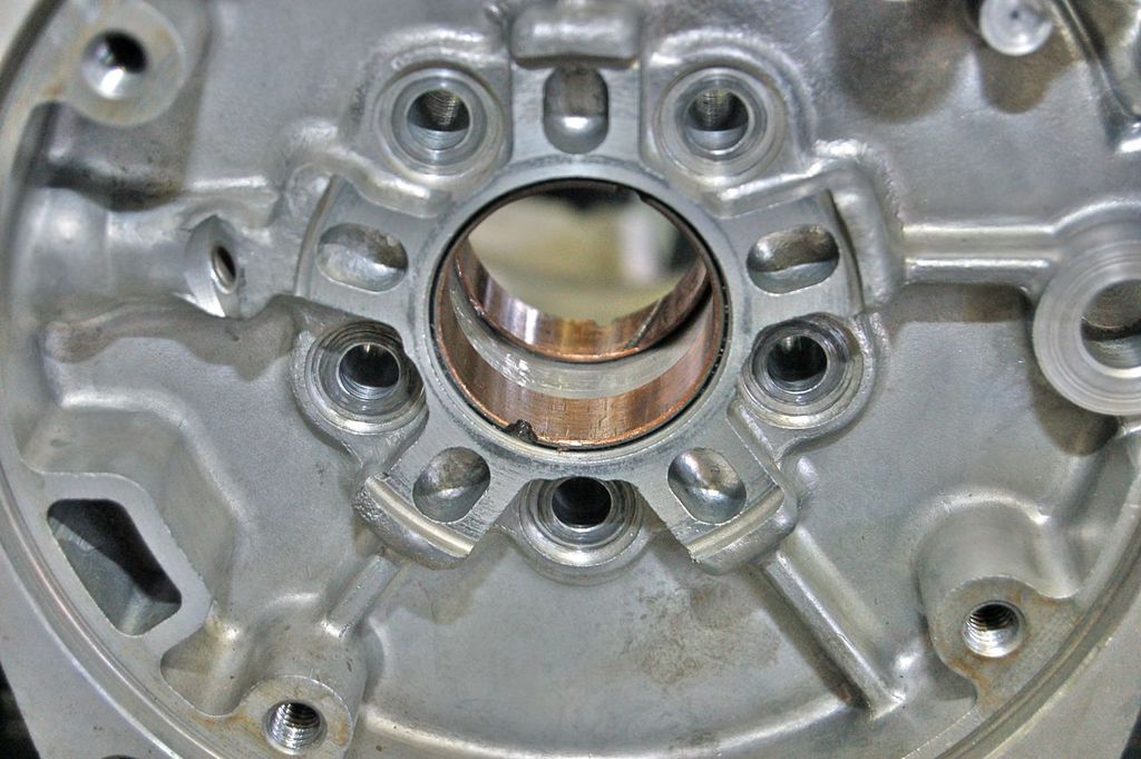 These are the only two bushings left in the case from last time. It's important to remember where the notches and oiling lines are facing. Also lube up the area with Vaseline or ATF.