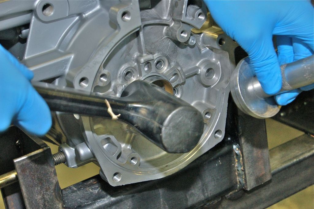 Now we can install the rear race, note the oiling hole location.