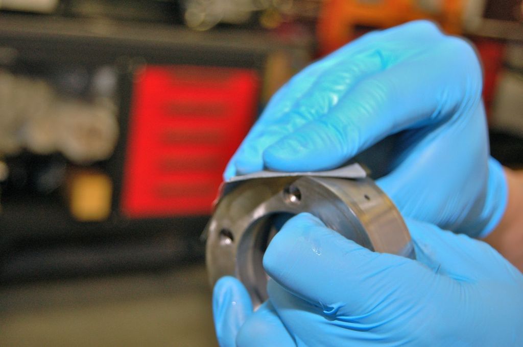 Next take the rear race and with some 320 grit make a cross hatch pattern across the radius.