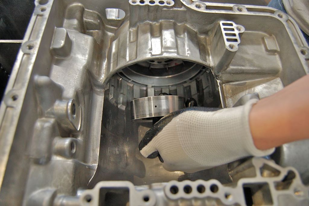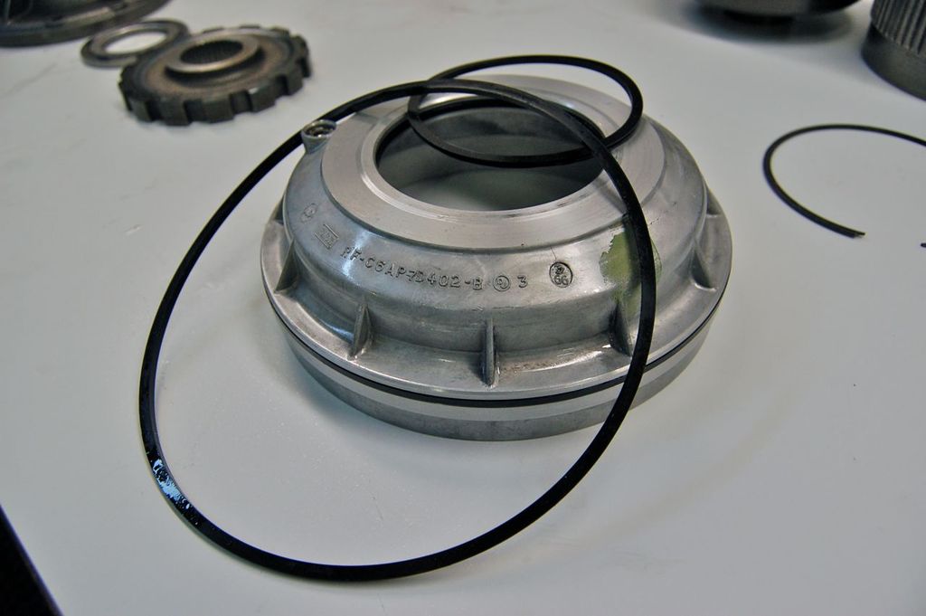 Clean the rear case piston (Low-Reverse Clutch) and replace the two old seals with new ones. Again, lube everything, can use ATF or Vaseline or both.