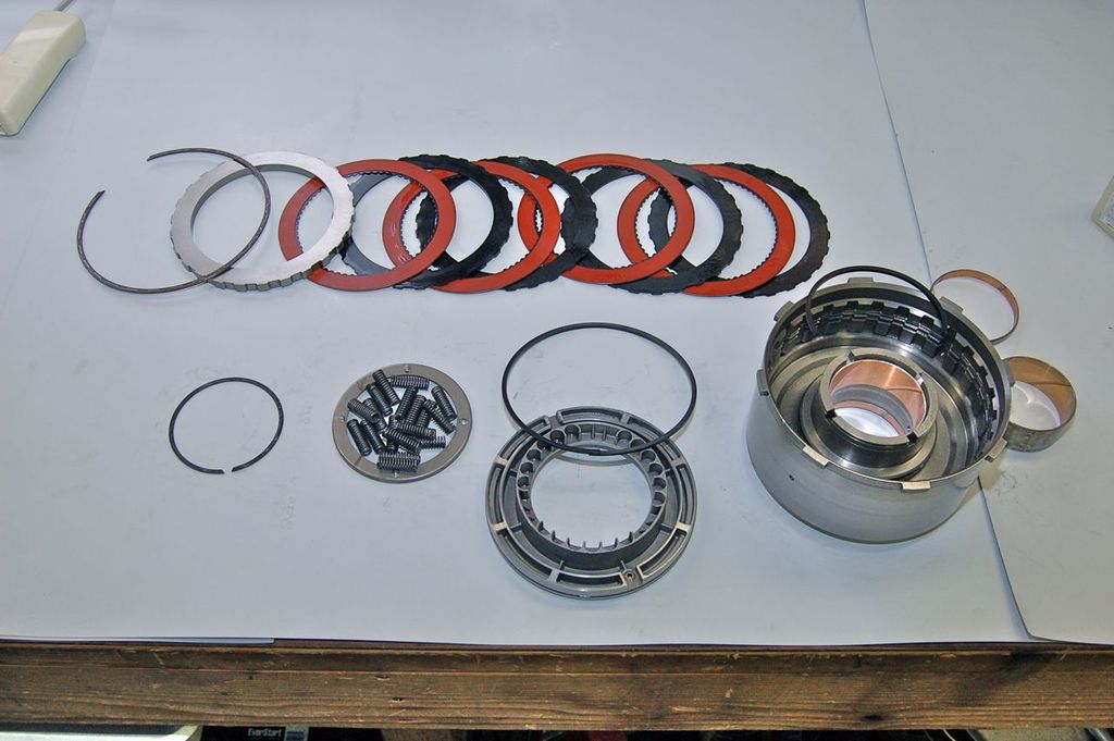 Then the frictions and steels followed by the upper pressure plate and topped off with the retaining snap ring. Soak frictions in ATF...