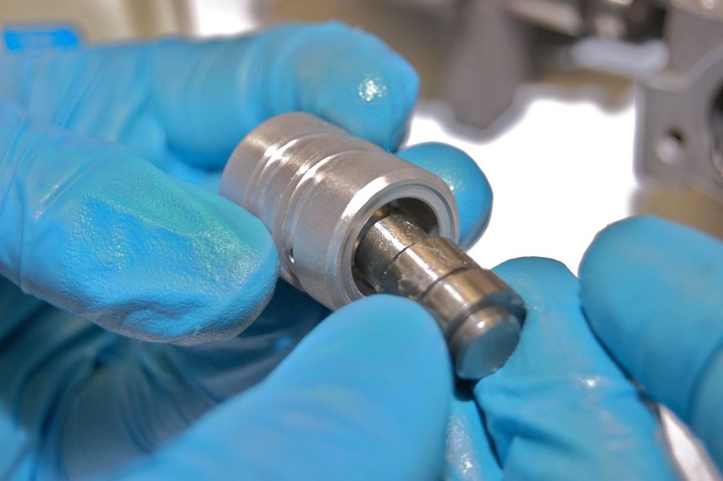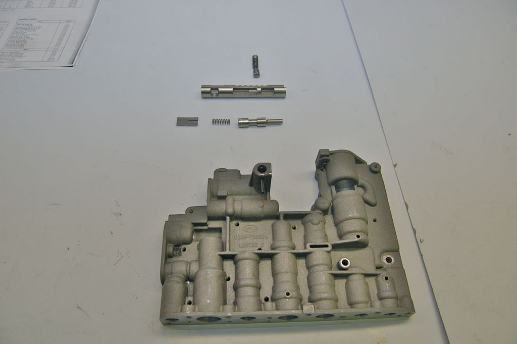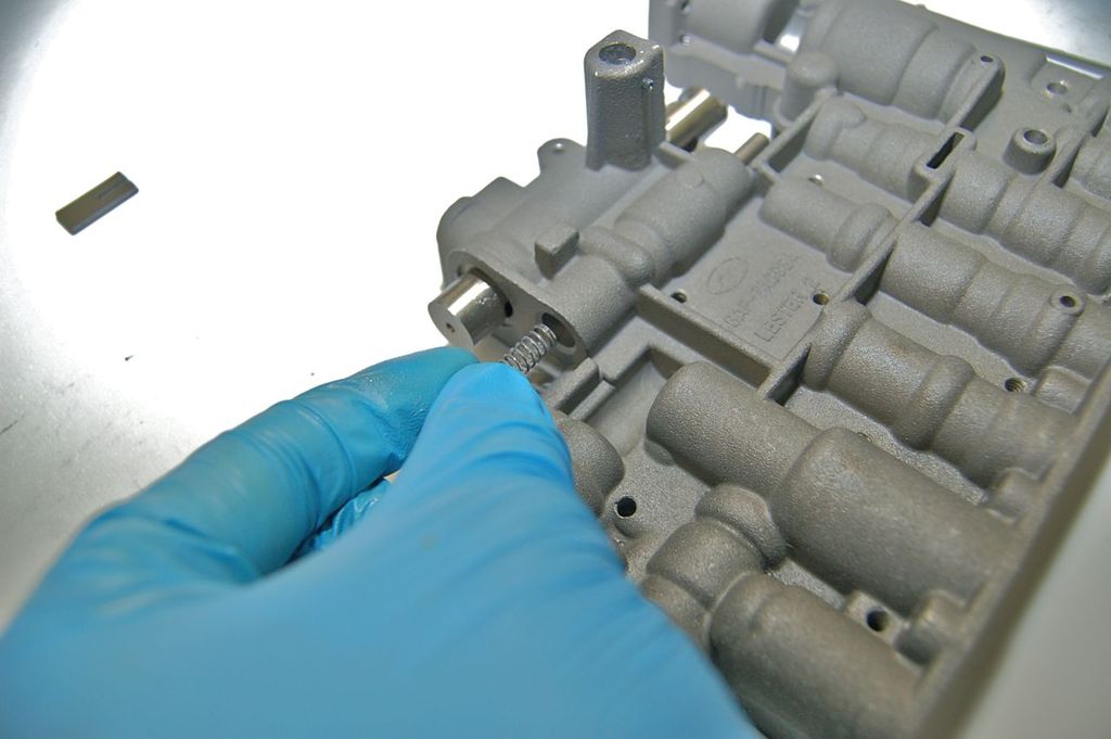 Valve body has been disassembled and cleaned and ready for assembly. The manual valve goes in first.