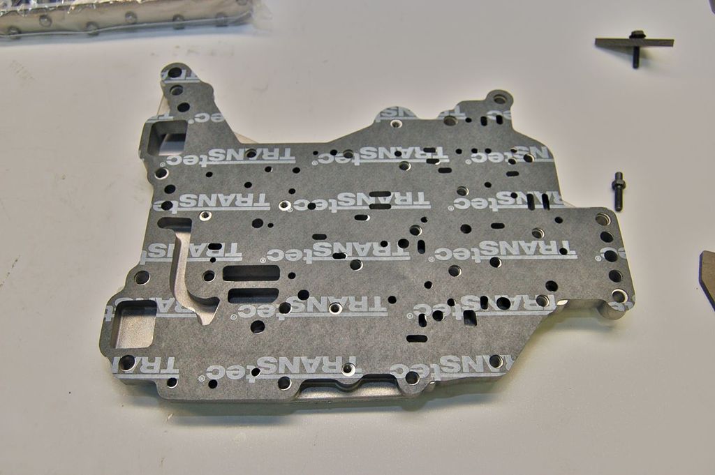 The new gasket goes on. Reminder there are two possible valve body gaskets, one for 1966 dual range only and the other models called select shift. This is still the 1966 dual range valve body so requires the hard to find 1966 gasket.