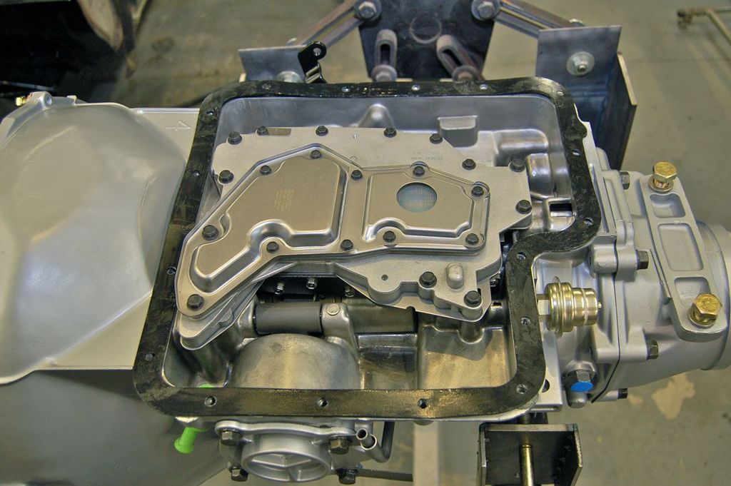 I powder coated the pan and installed a drain plug with a magnet. Bolt this on the transmission.