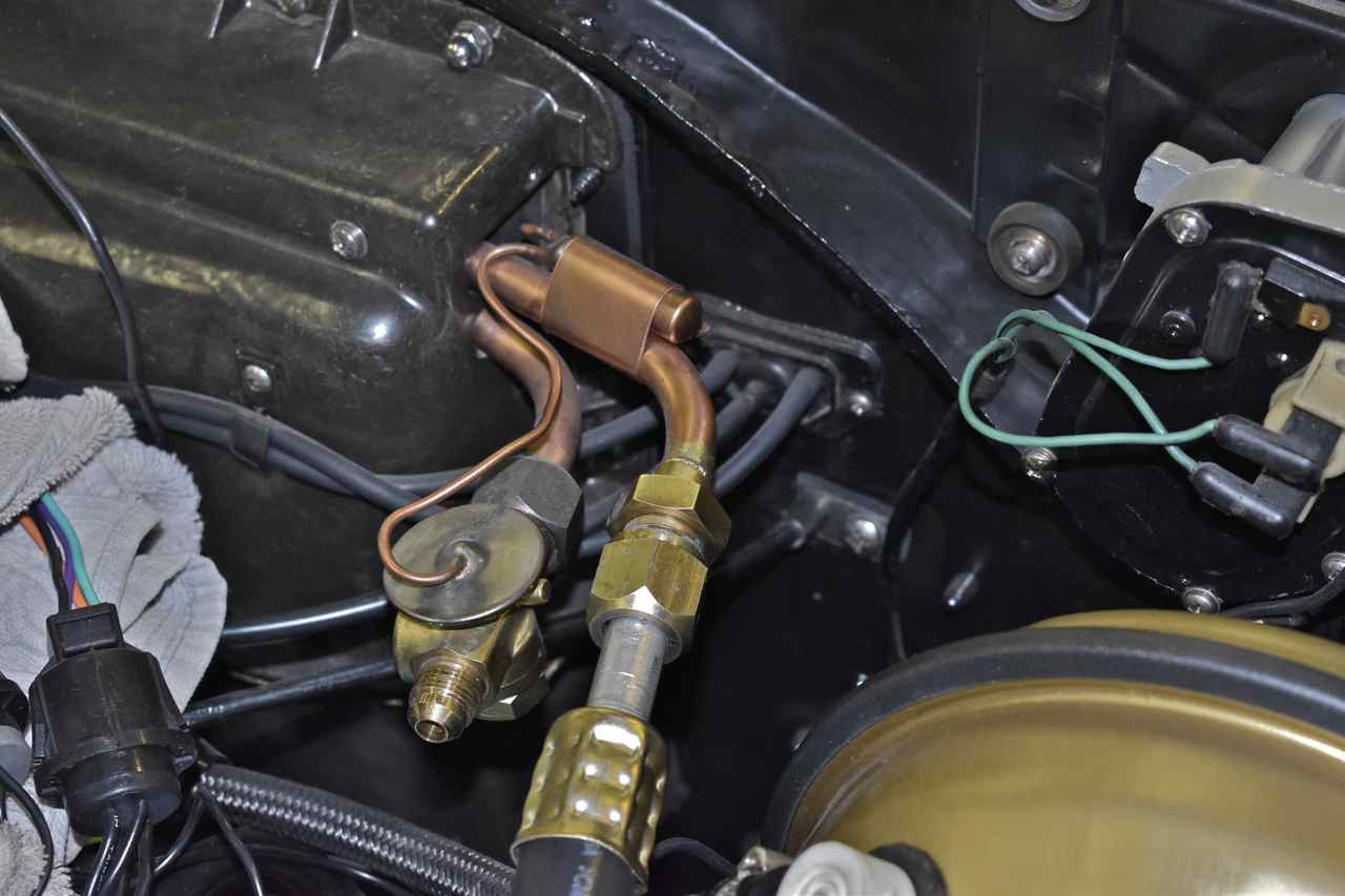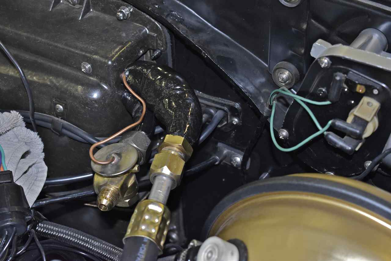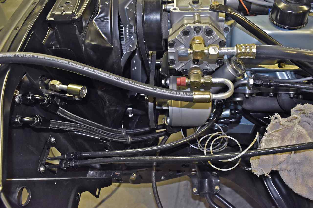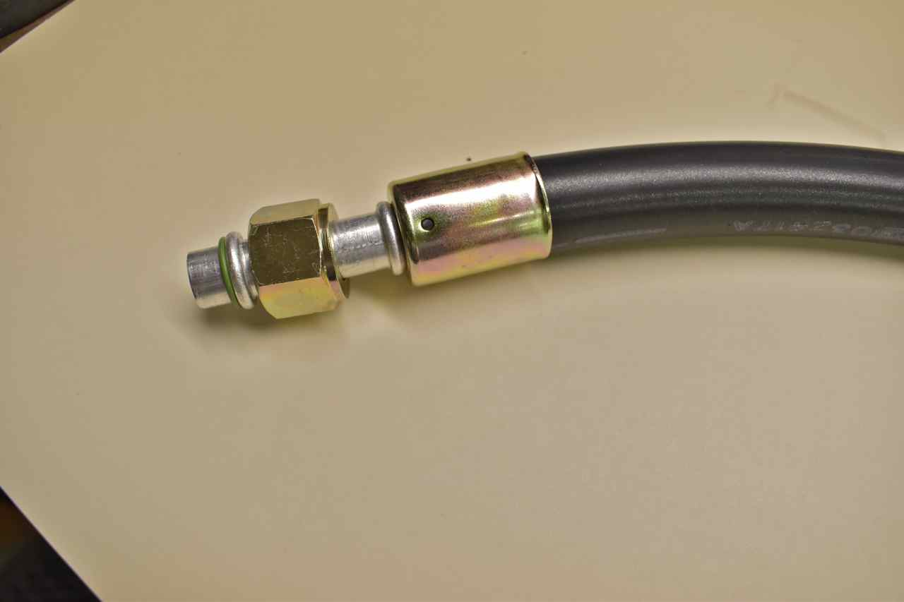 I just continued on with the remainder of the hoses. Now since I'm using R134a head fittings on the York those use O-ring fittings (more modern) the rest of the car still sports its old 45˚ flare fittings.