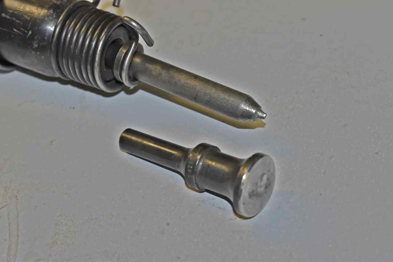 These are the two heads for the riveting I use. I made the crude tip one on the grinder. I found on these if you do not first splay the rivet end out it just mushes over to the side with the flat hammer and doesn't look good and probably doesn't hold as well.