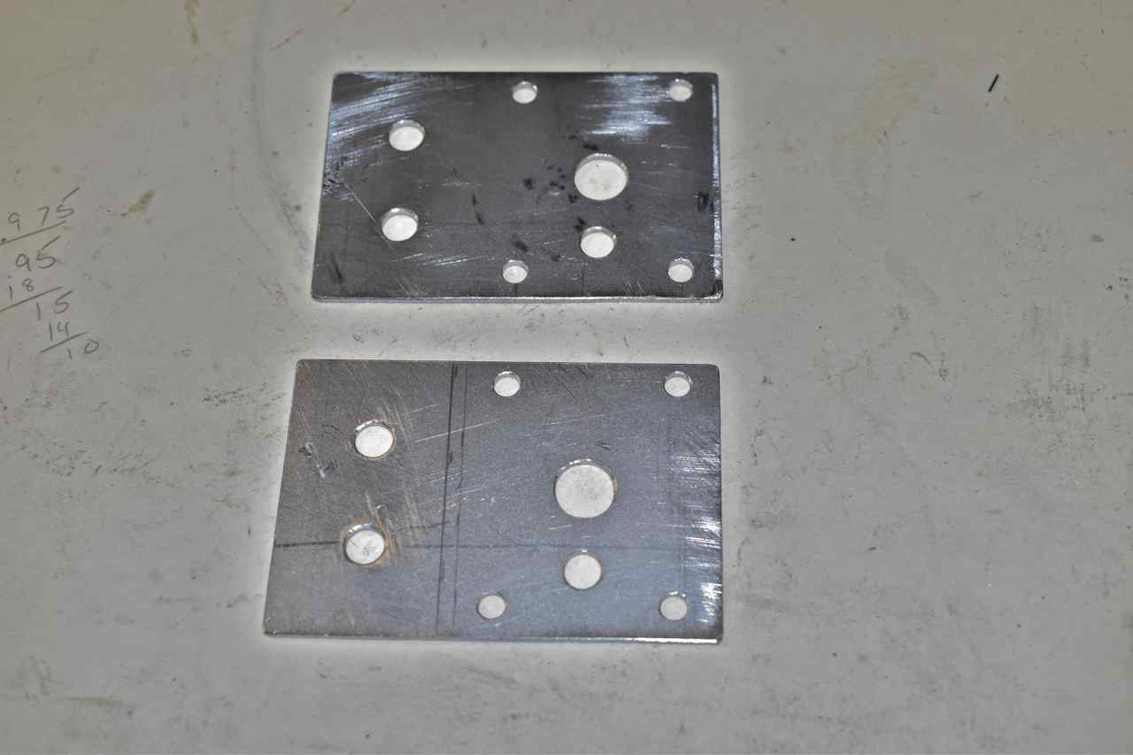 These are the little plates I made to mount the door lock solenoids. If this car was ordered originally with power locks they were vacuum operated and what a mess of a system that was. I'm using GM '77-'90 electric door lock servos. They are pretty robust and can be still bought aftermarket.
