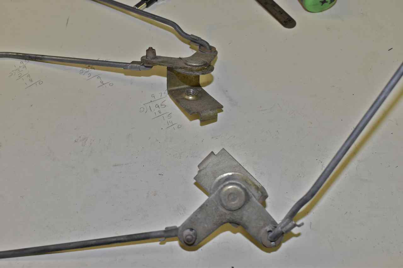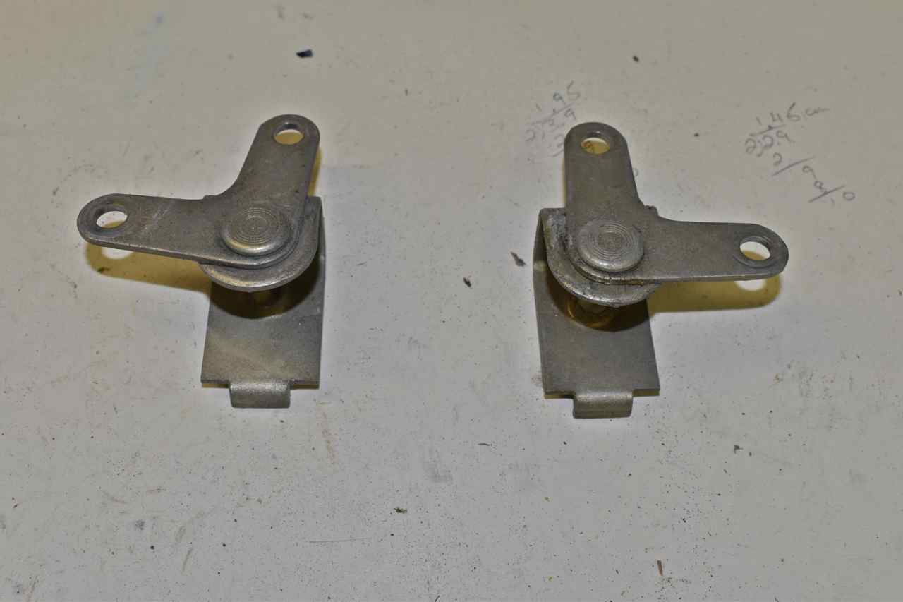 The rear door lock mechanism system uses these bellcranks only in the rear doors. These are a spare set I had. They translate the vertical movement of the door lock button to a horizontal movement that a rod traverses the span of the door to the latch. I need to add a third ear to the other side so the door lock solenoid can attach too.