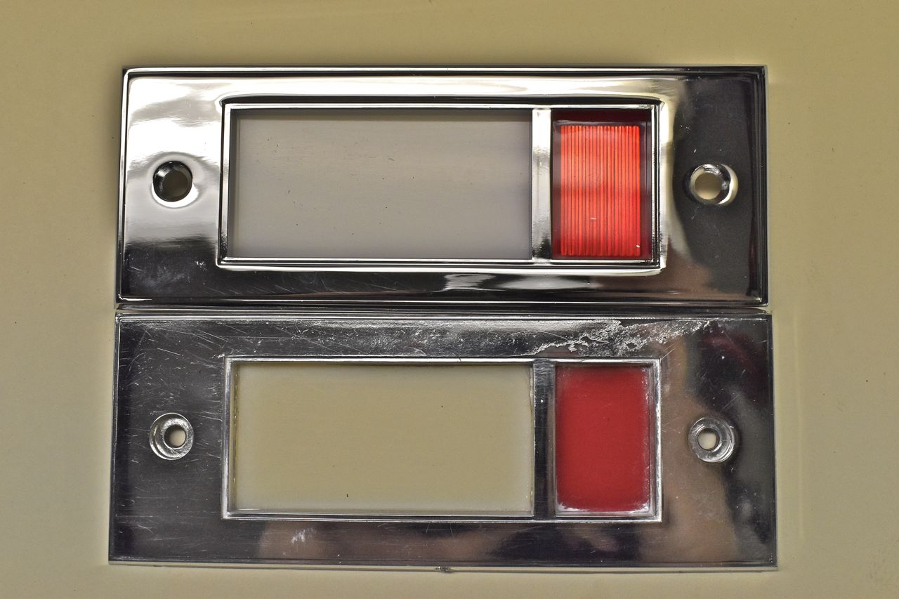 The cheap plastic courtesy lamps were showing their age, the plastic was cracked on a couple doors, the metalized coating was scraped off on this one and the lenses weren't that great either.