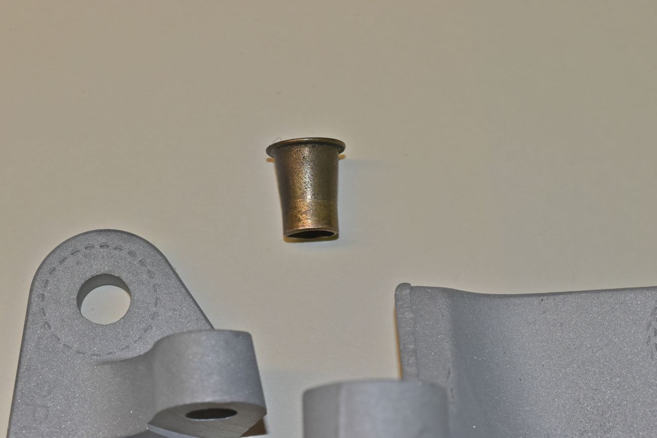 This is the little blighter that caused this kerfuffle. And the hinge more or less had the bore to match the conical shape. I mean why????????? Why not use the same bushing the other hinges use.