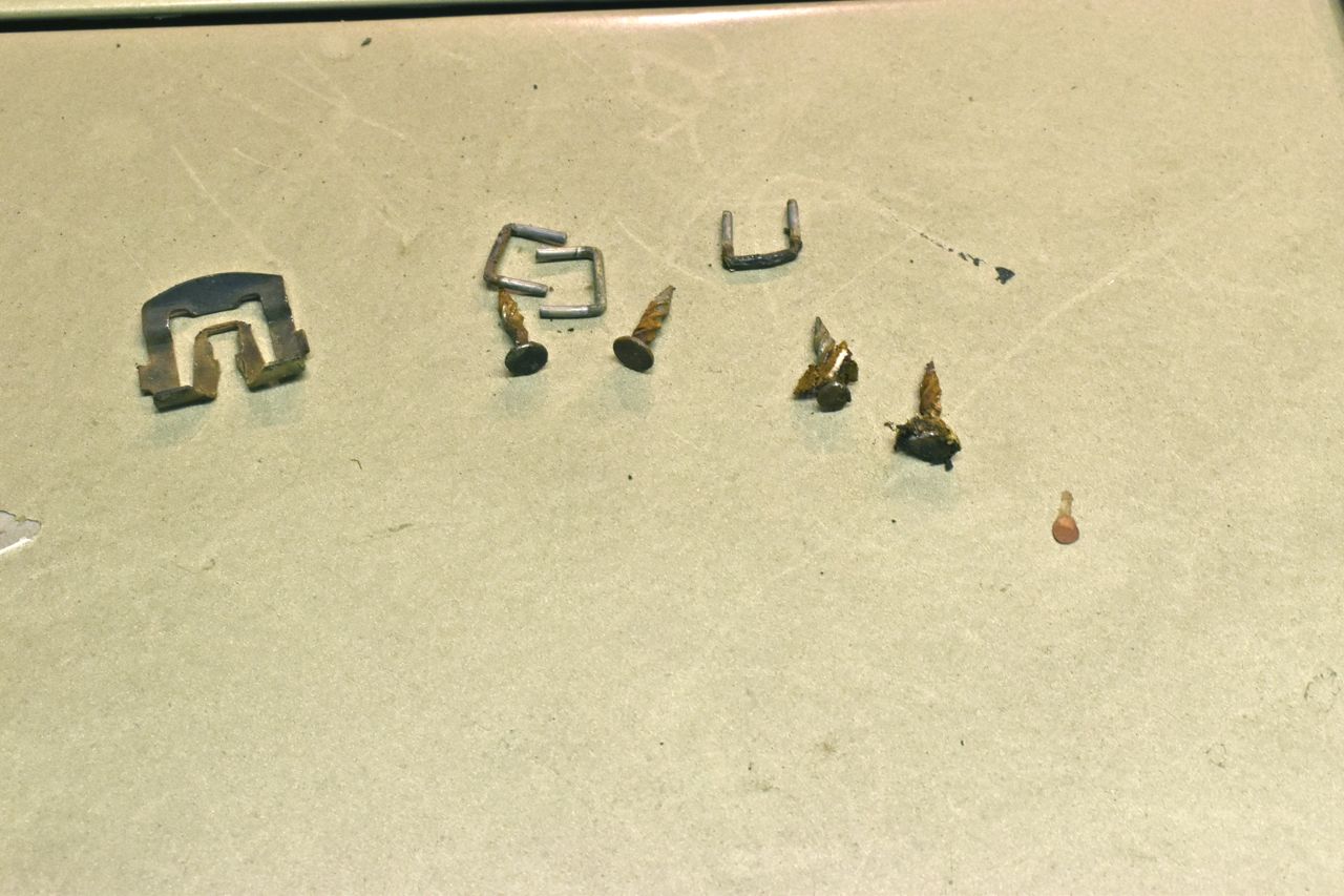 This is the disturbing portion of the show. The vinyl top was stapled and nailed, yuppers, nailed into the steel roof. There are loads of holes to weld and grind smooth shut.