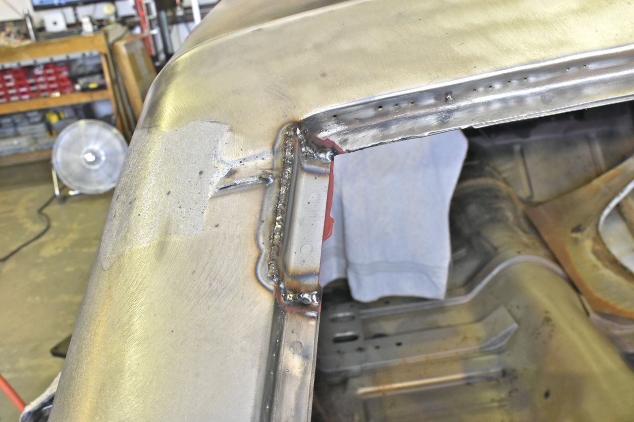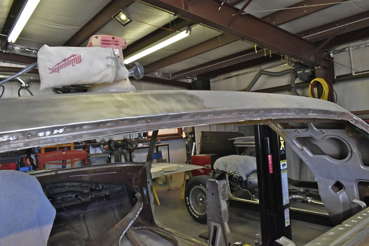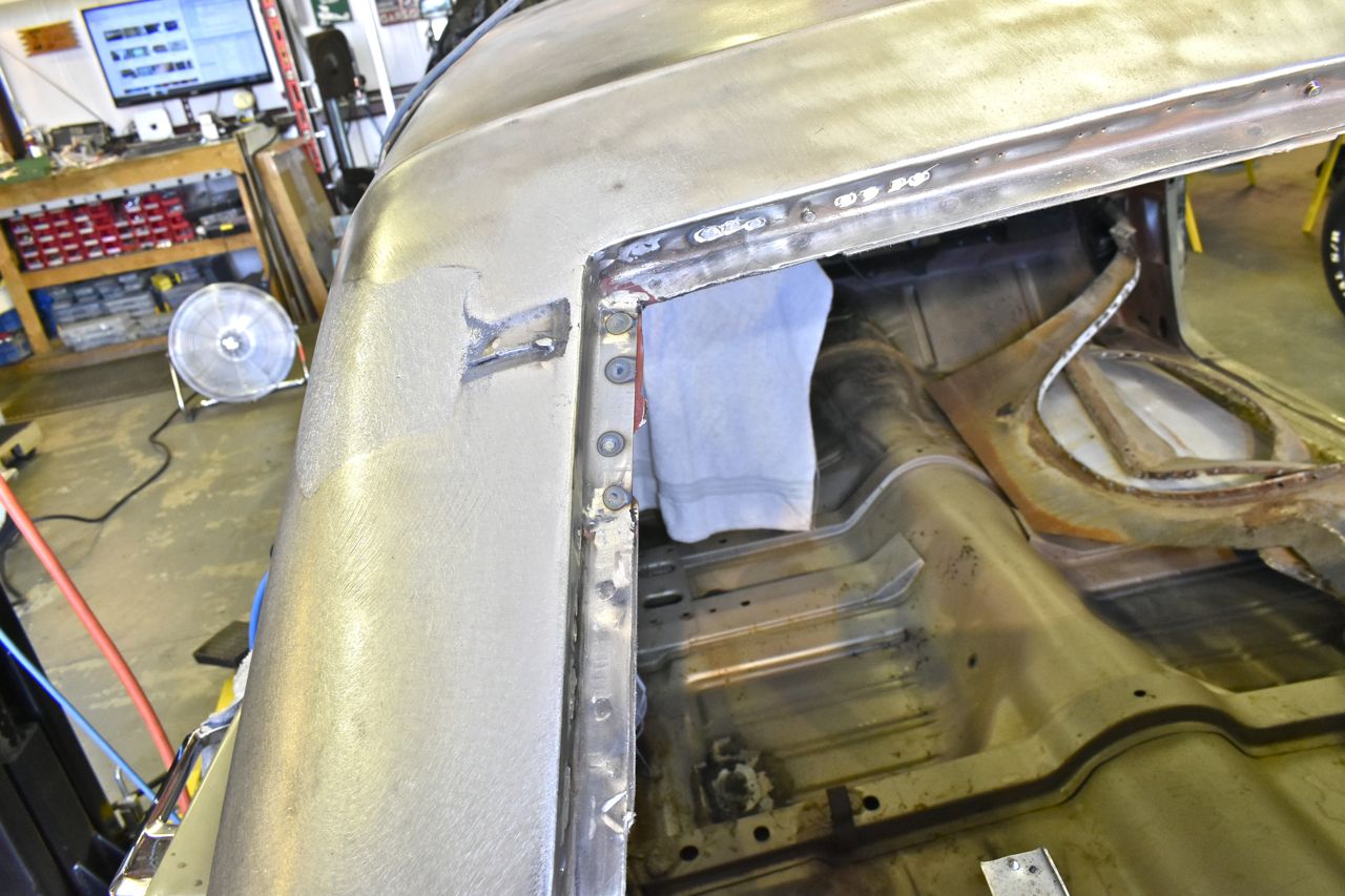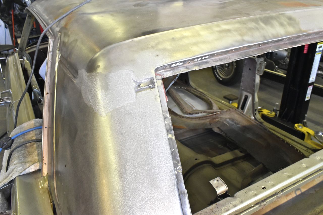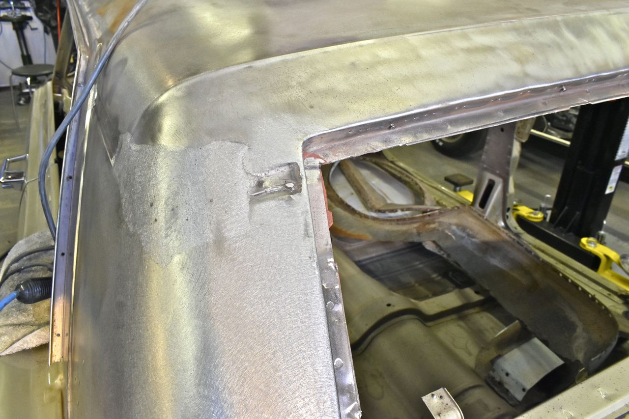 I reworked it, but still had a dew low dimples, then I remembered why am I even bothering, first the vinyl top will hide slight imperfections anyway, and secondly I am going to try to lead that seam so I can just put a little lead in the low spotted area to calm the OCD.