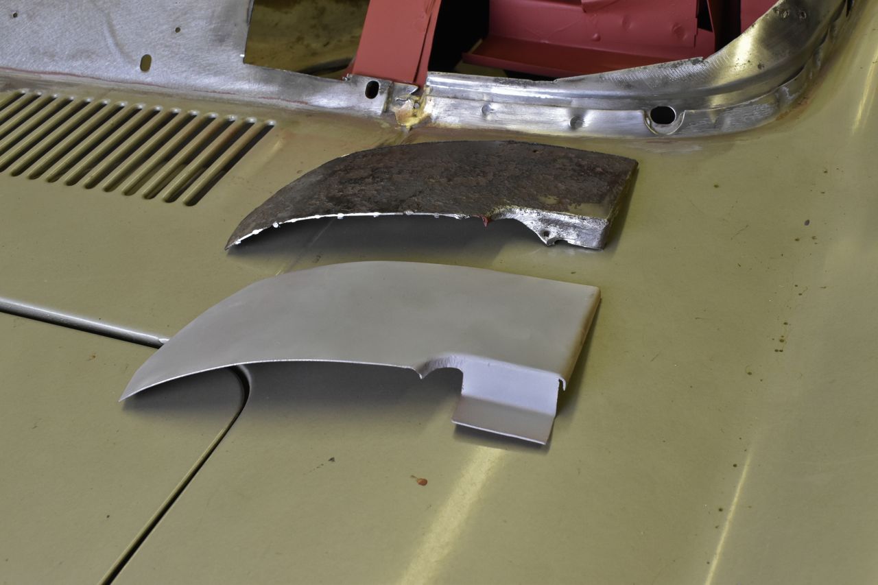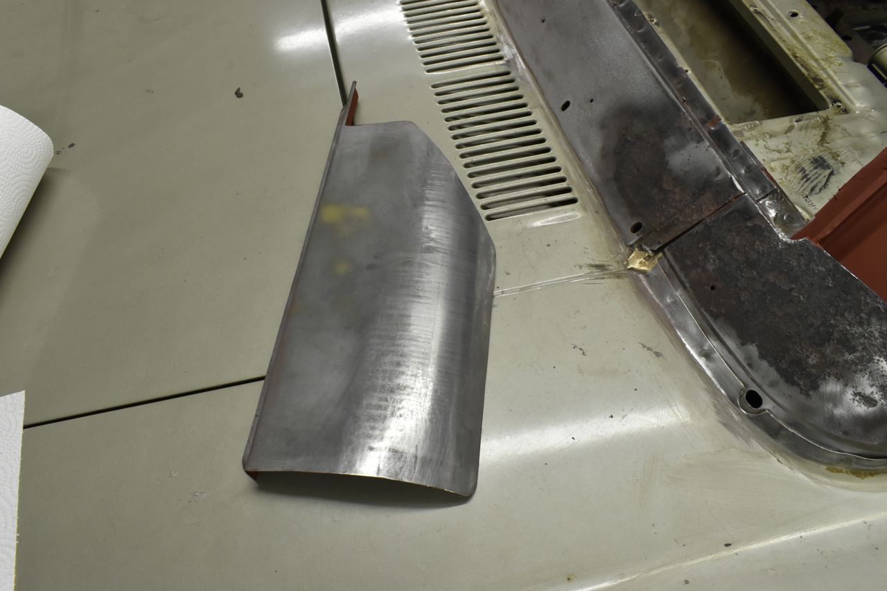 This was round one of many on this hand formed piece of metal. Actually this piece of metal is from a donor galaxie roof skin. I wanted this to ensure it was the same thickness, material and temper in order to minimize any problems in butt welding this together.