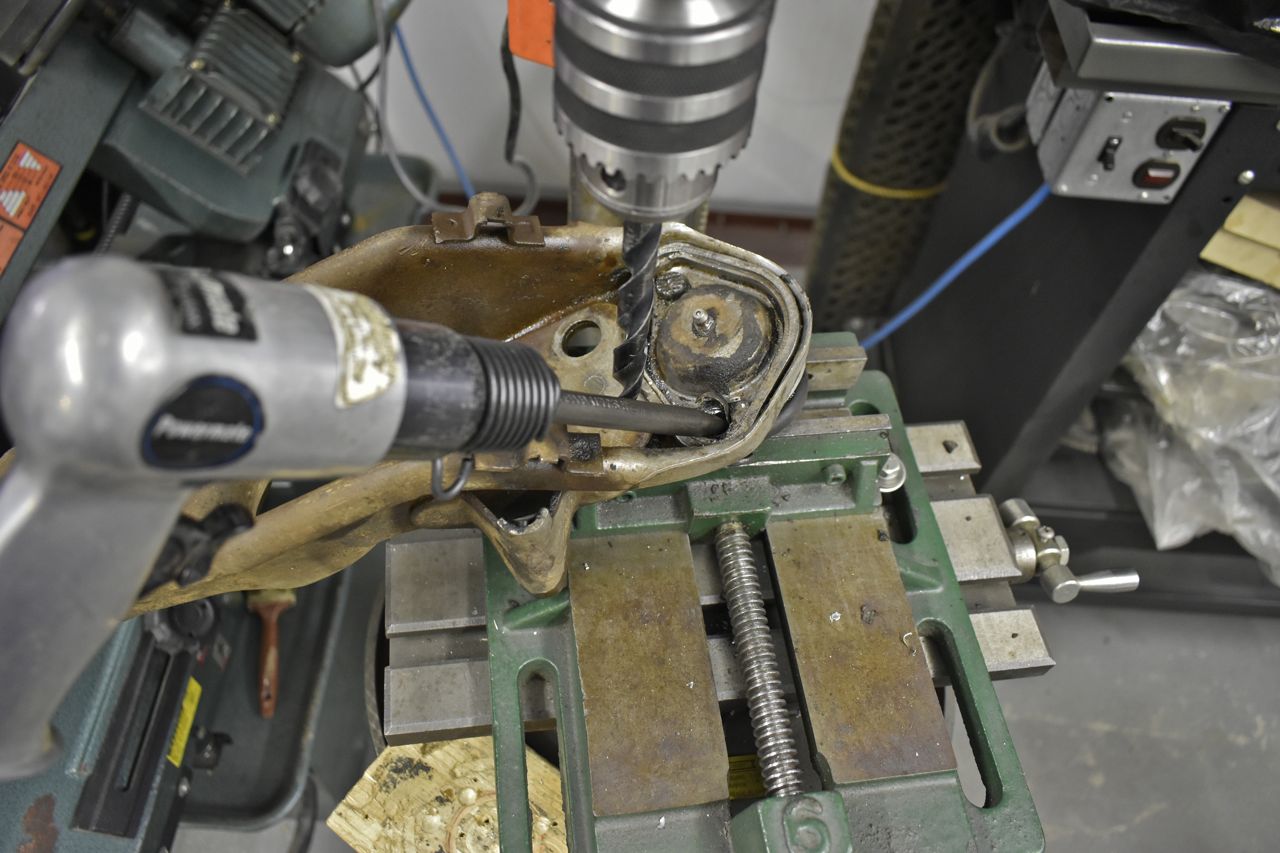 This is the portion that I really do not like, that is drilling out these pressed riveted ball joints. A word of caution the centre of the head here is not the centre of the shank, it's mushed over so only drill deep enough to remove the head and not into the arm.