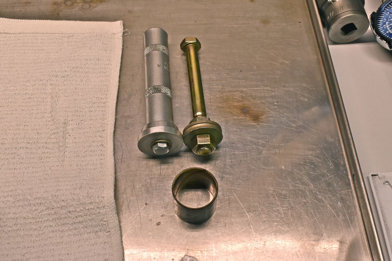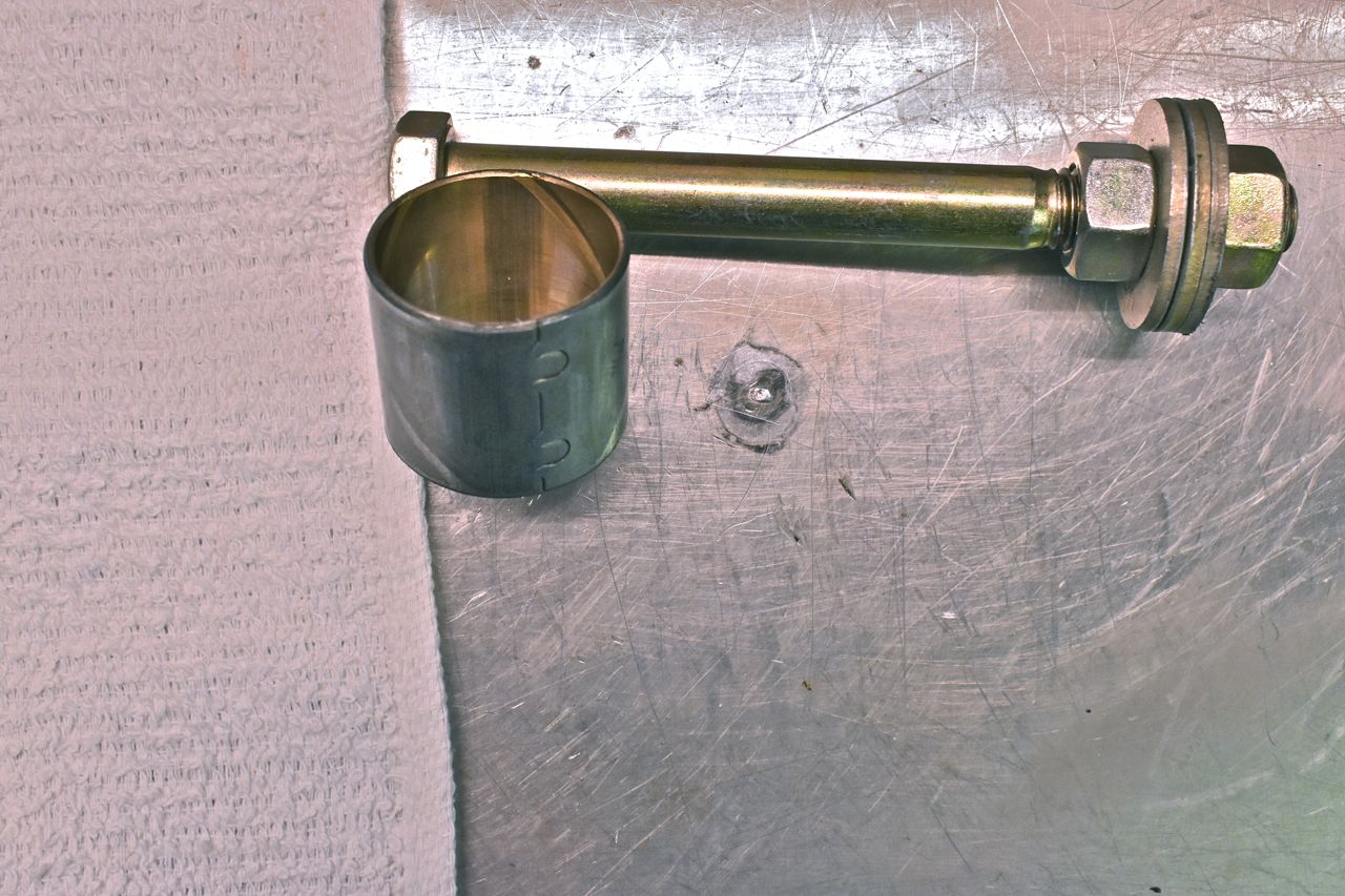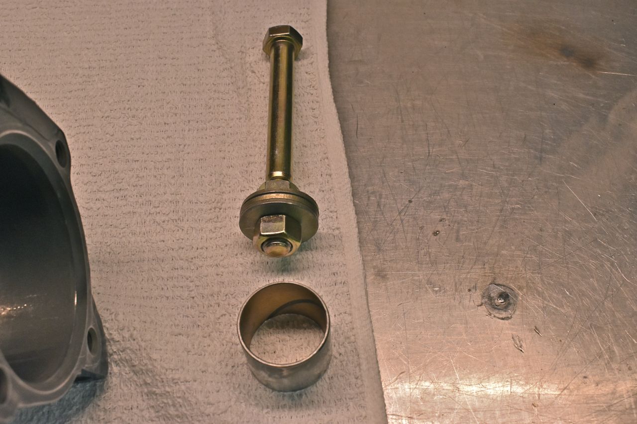 The cheap easy tool for removing the bushing is a 1/2 bolt with 1/2 grade 8 washers like above.
