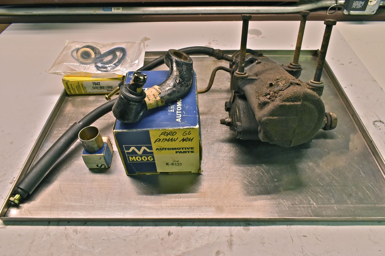 The one thing I've noticed on these Ford power steering gears is the bushing on the Pitman shaft wears. Now this was cheap on Fords part. The Saginaw power steering gear (also a possibility on these cars) and the Ford manual steering gear have a needle bearing for the Pitman shaft and doesn't wear.