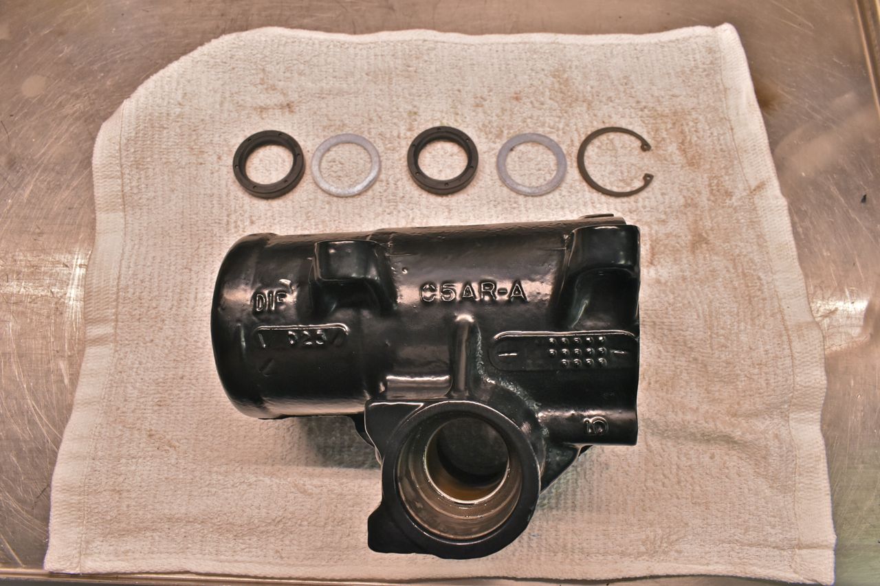 Next up the lower Pitman (Ford calls it Sector) shaft seals. Both rubber seals are identical. It just takes two due to the intense case pressures that can develop when hitting the stops on the control arms. (>1000 PSI).