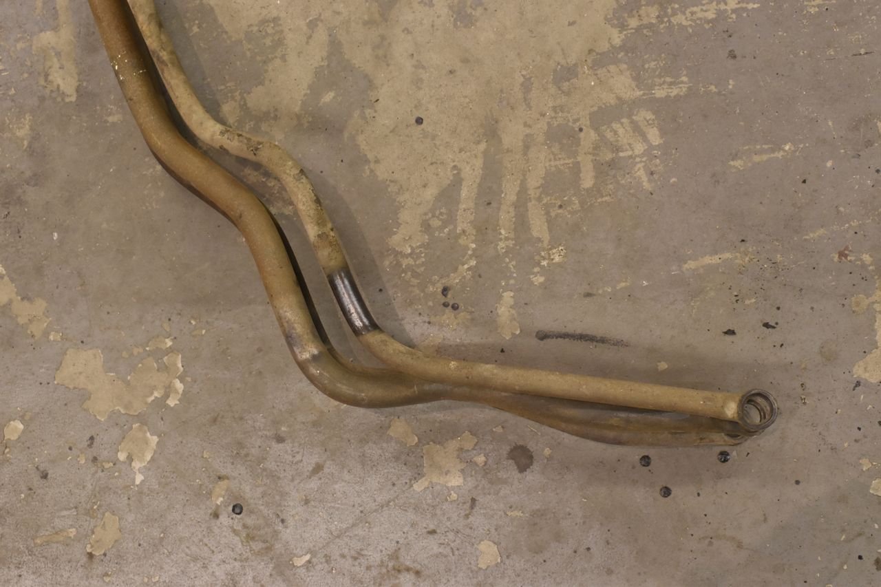 I wanted to upgrade the sad little pencil like front sway bar to something a little more robust. In my perusing of posts and forums it was mentioned that later model large Fords yield a sway bar that can be used on the '65-'68. Armed with that a couple years ago I set off the junkyard to pillage a couple of thicker sway bars. We came back with two, one from a early 70's El Ranchero and one from a 1978 T-Bird.