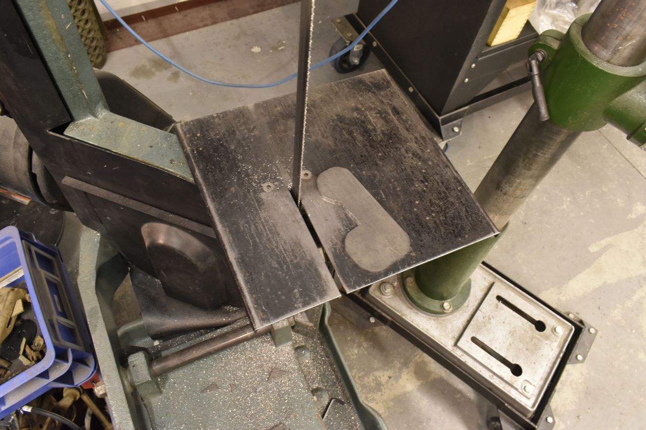 Roughly cut it out on my cheesy bandsaw. It's a really old Harbor Freight special. It was made in Taiwan and not China. Maybe that's why it still works.