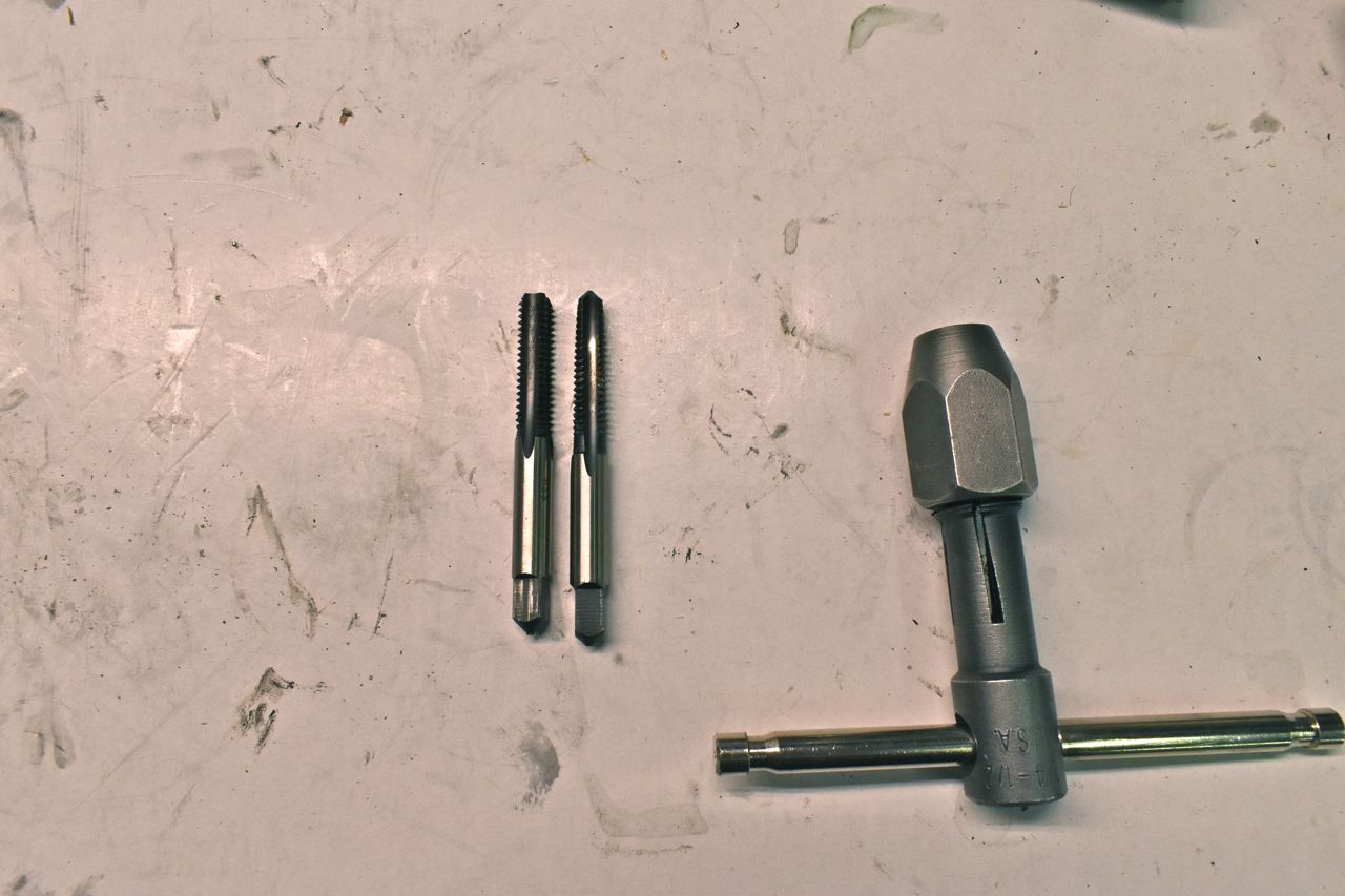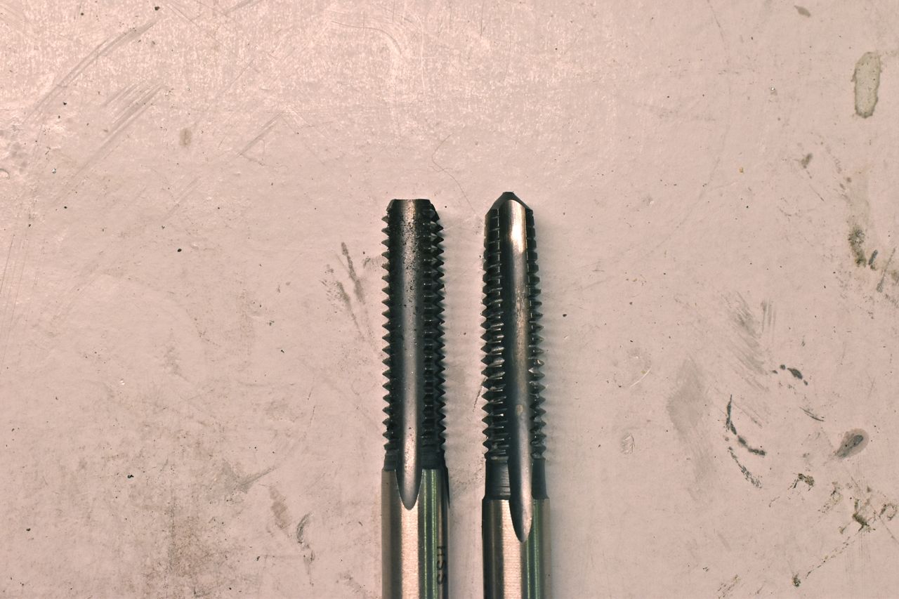 Because the upper hole is really close to the axle tube a taper tap will not be able to make it all the way through. But you can start it with the taper tap and then switch to the plug tap (squared off one) and finish cutting the threads.