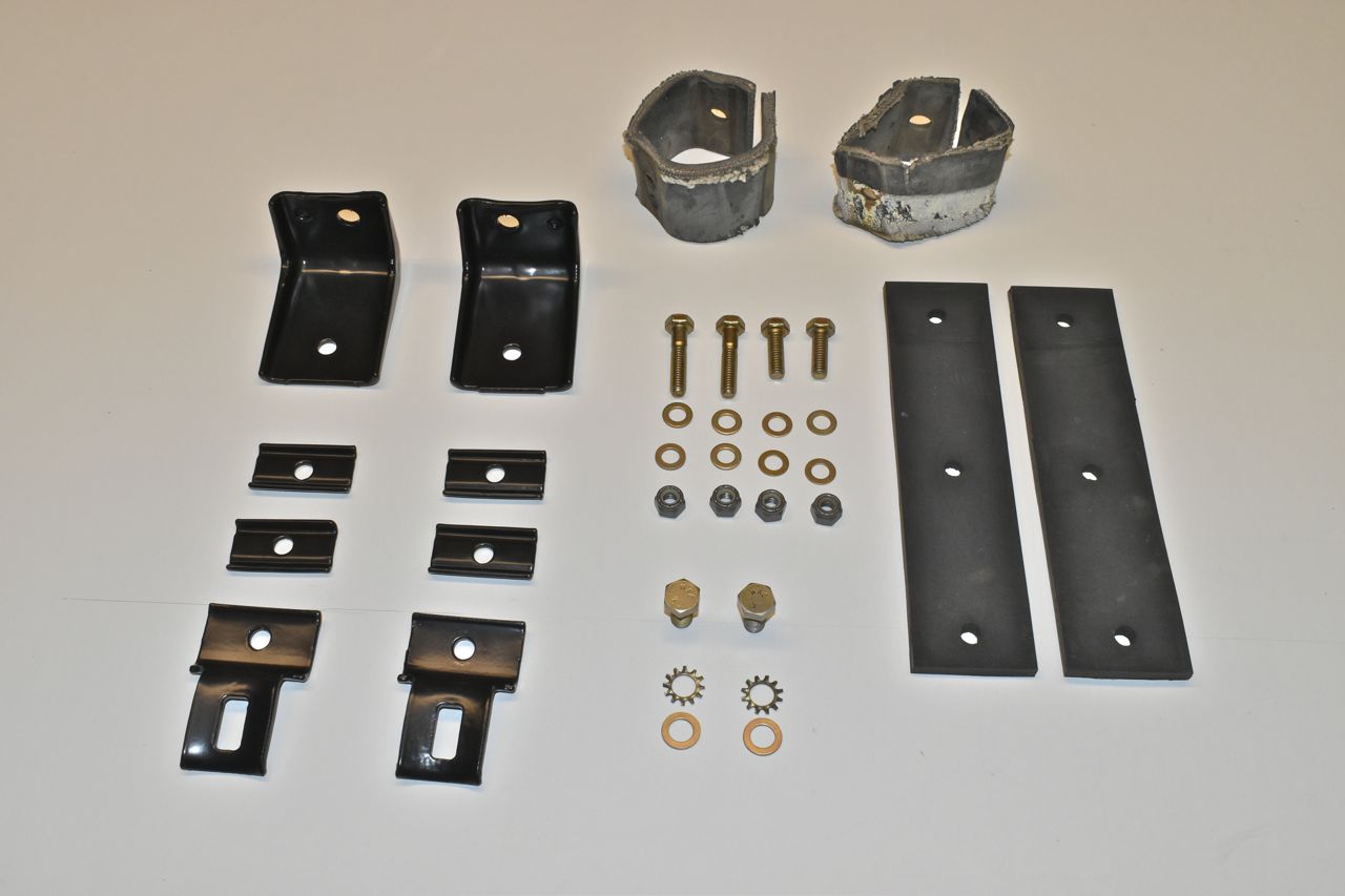 These are the two rear tail pipe hangers. That's the old material up top. I blasted and powder coated the rest of the bits.
