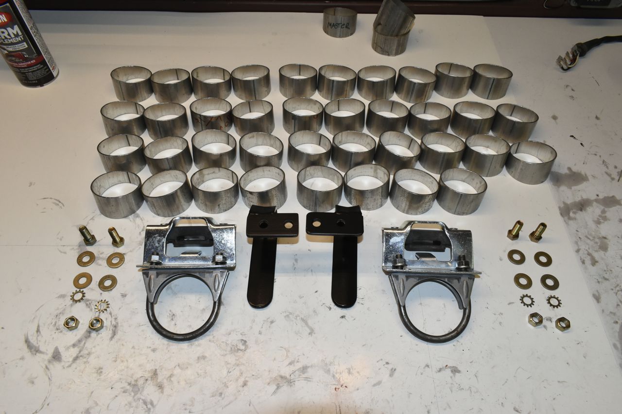 Now this is the rear tailpipe kit I bought for the '66 LTD. I didn't realize it at this point or when I thought I was finished but they didn't bend this the same as when I bought this much earlier for the '66 LTD. I didn't catch it till I thought I was done and working on fuel lines. So we'll be coming back to this later. But I soldiered on with the rest of the tailpipes. (As a side note these are GM A body early 70's pipe set). Can you spot the problem at this point?