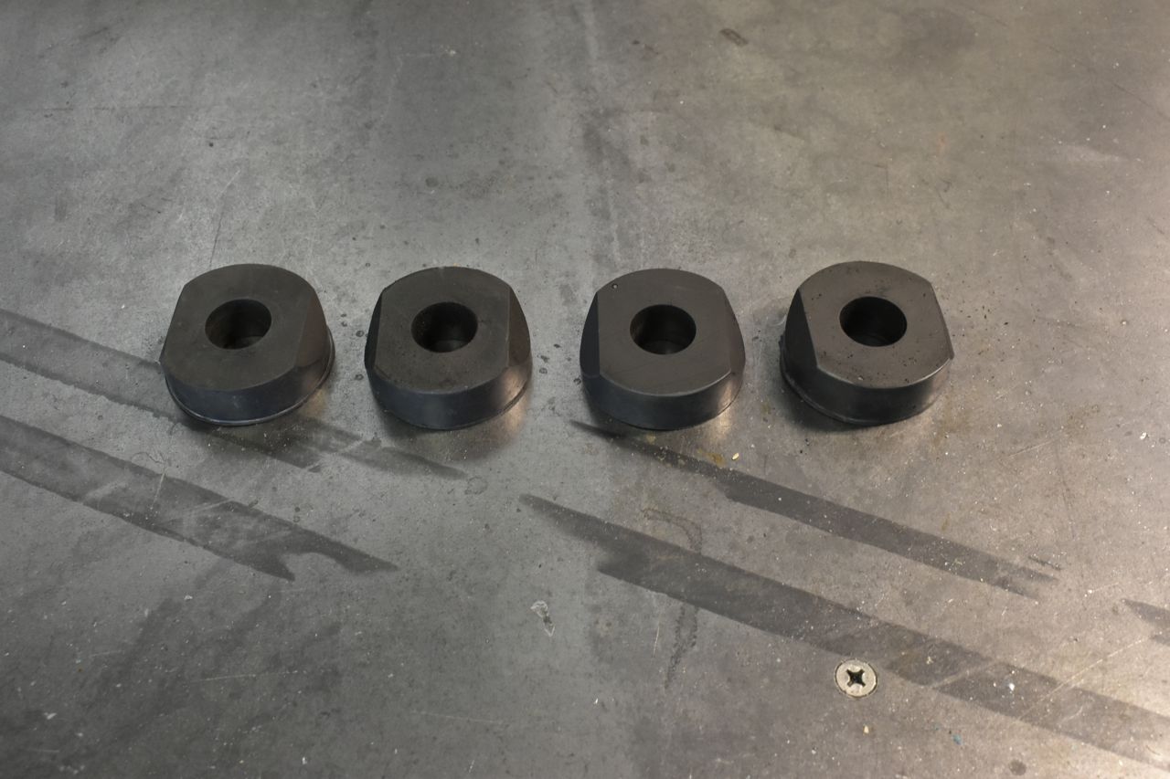These are the front upper isolators, they needed to be chamfered in order to fit the inner pocket in the front body structure.