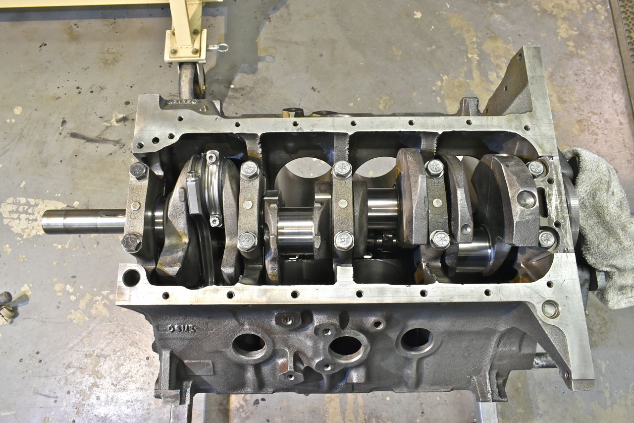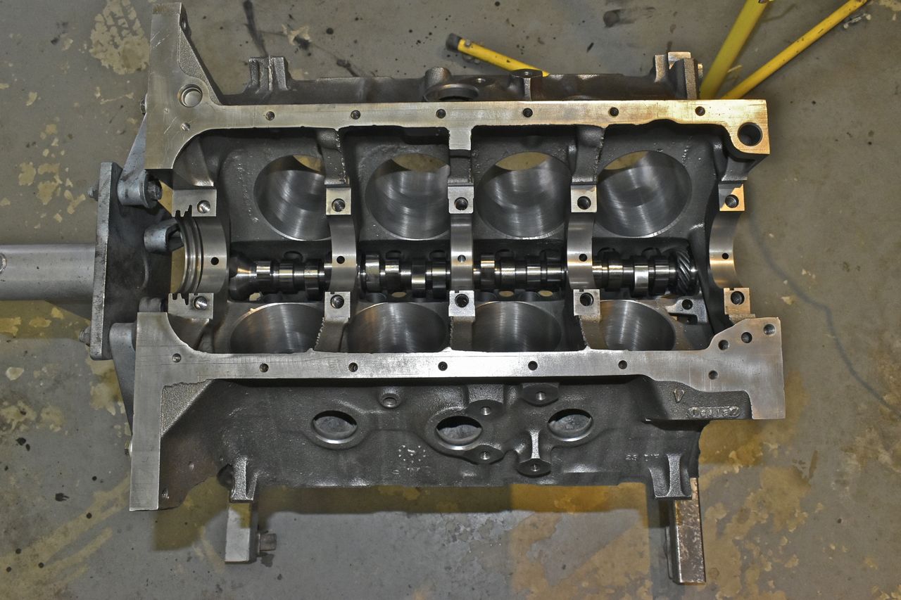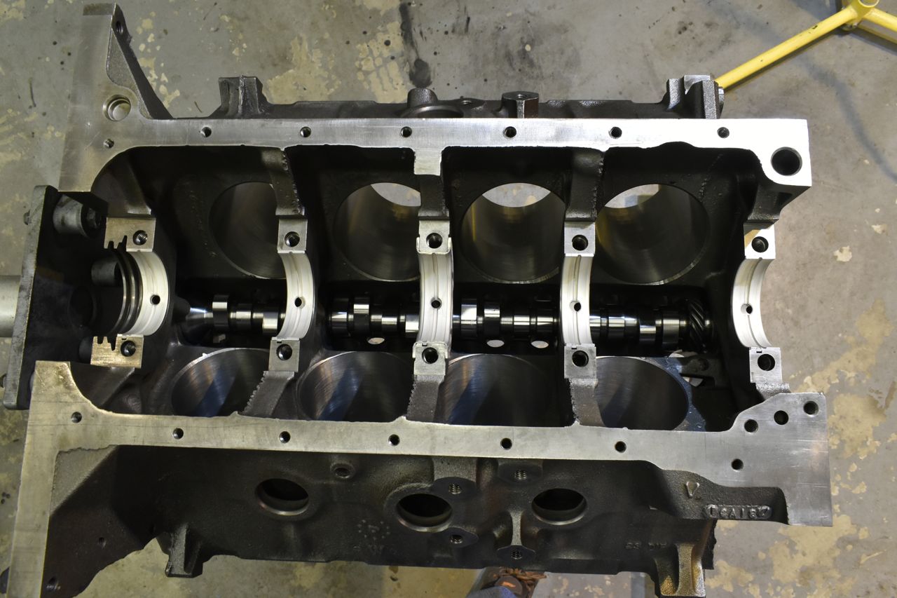 With that, the crank was removed, cleaned one last time, lubed the bearings and with a new rear main seal kit, the crankshaft was torqued down. It spins by hand smoothly. The camshaft is also lubed and installed.