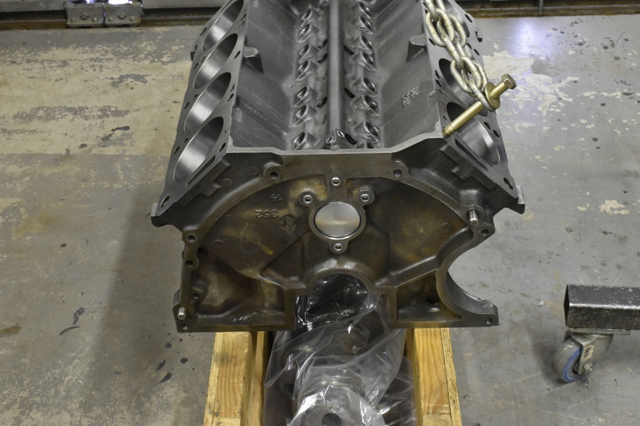 I had to get a little creative to fixture the block whilst tapping in the rear plug with sealant. I used an old suspension bushing housing and it was the right size.