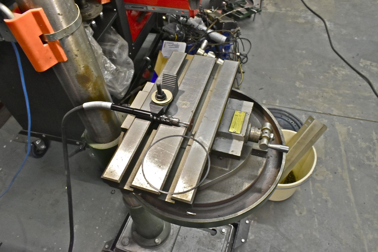 It's just the Dremel extension wand on low with the cut off disc clamped down to the X-Y table on the drill press with the direction rotating inwards on the ring. I used the lighting to judge the edge whilst grinding.