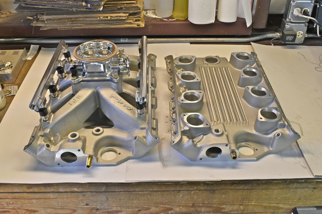 Now back to railing on Edelbrock quality. On the right is a Blue Thunder intake and that was 750 dollars. The Edelbrock is 815 dollars. The Blue Thunder is fully machined nicely and ready for install. The Edelbrock intake is not. I don't have specific pictures yet, but I need to machine a flat spot around each intake mounting bolt so it can actually seal. Plus the intake ports are so small and off compared to the intake gaskets much porting and polishing will be needed to match the heads.