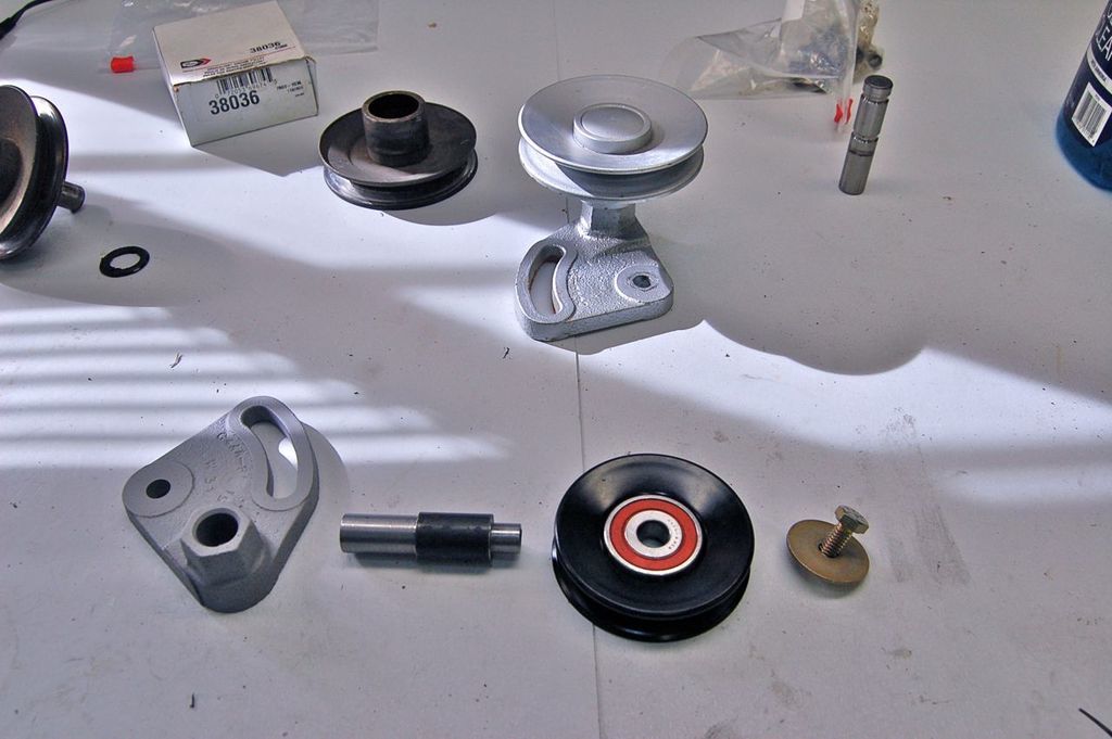 Out of pure dumb luck, one of our 66 fastbacks came with California emissions which includes a different front dress for the air pump and it had a large idler pulley that used a standard replaceable bearing.
