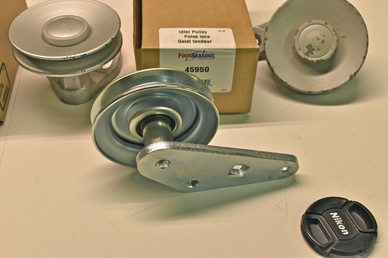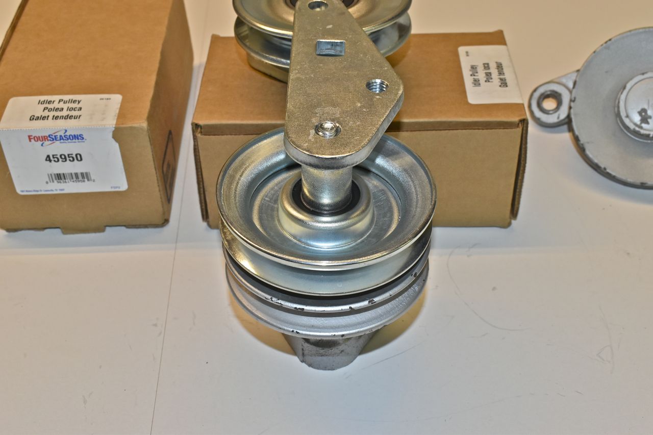 This was another sort of win. Anyone who has a 65/66 Ford full size with an FE and factory air con knows the refrigerant compressor idler and tension pulleys are unobtanium.