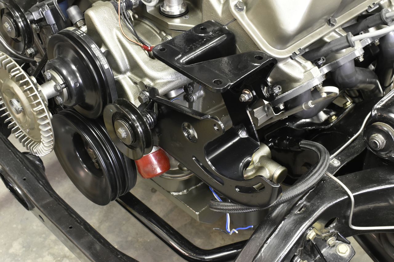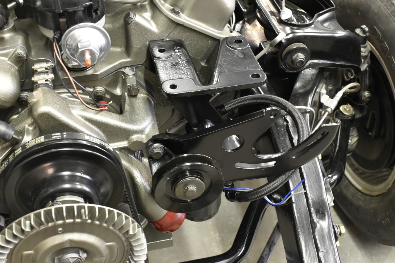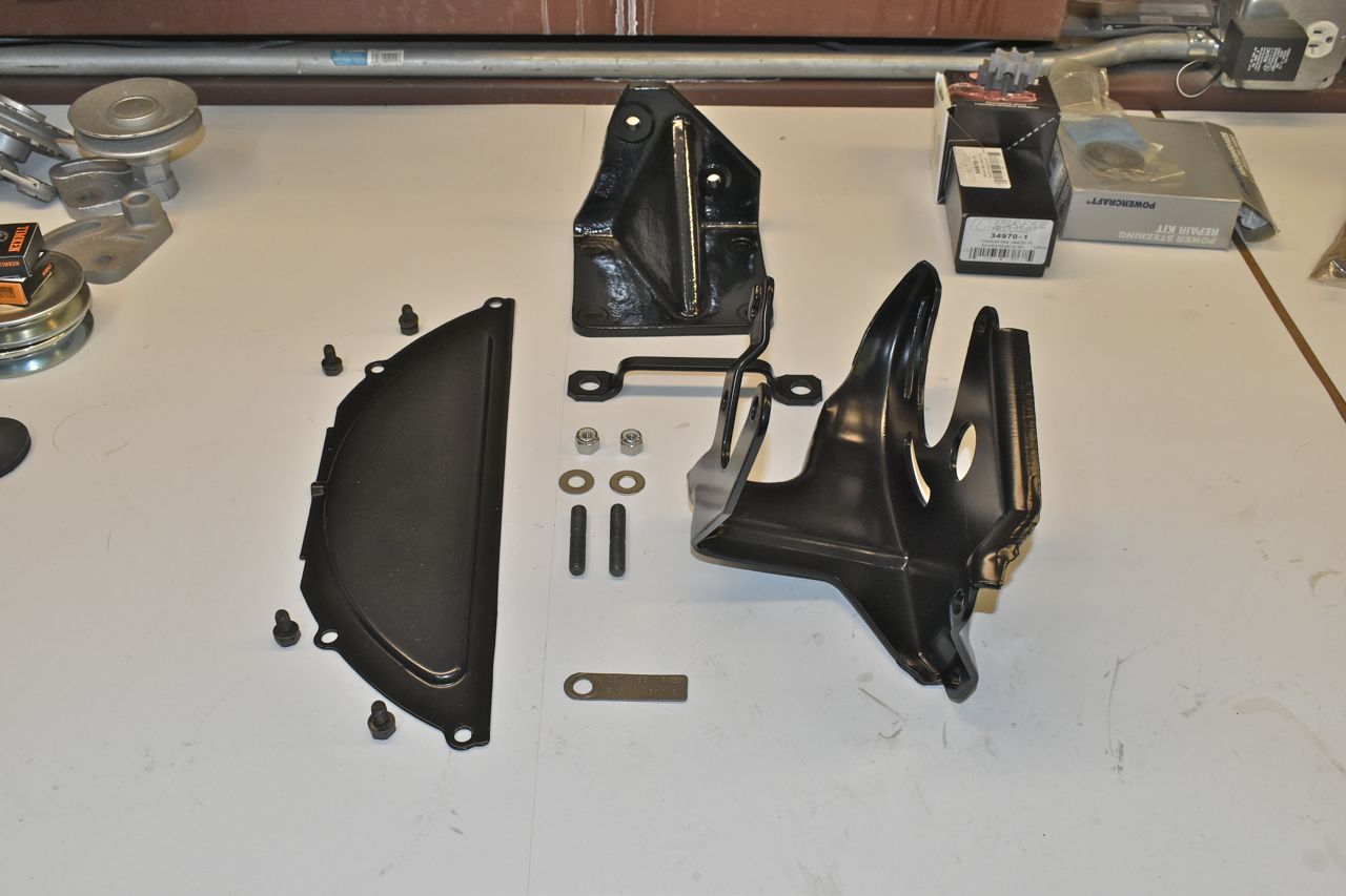 Then the power steering pump bracket and then the A/C idler pulley bracket goes atop the power steering bracket.