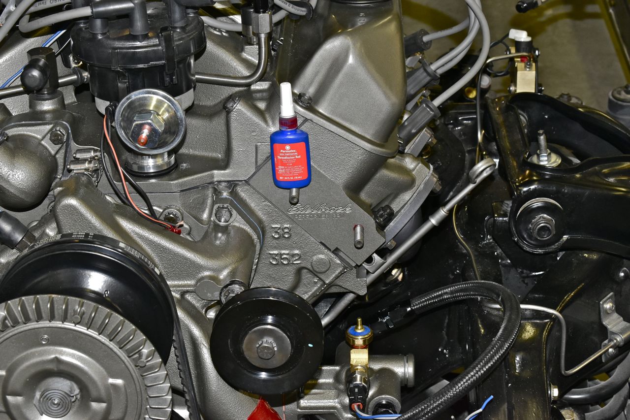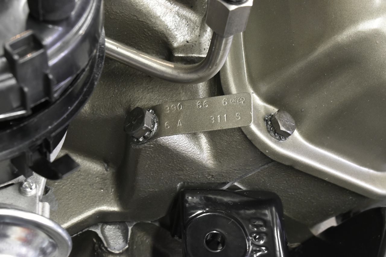 Some brackets, cover, and tag to install. I made two new head studs out of grade 8 bolts and blackened them. It's sad I see many cars that are missing things like tags, or the transmission cover or the safety retainers in the transmission mount.