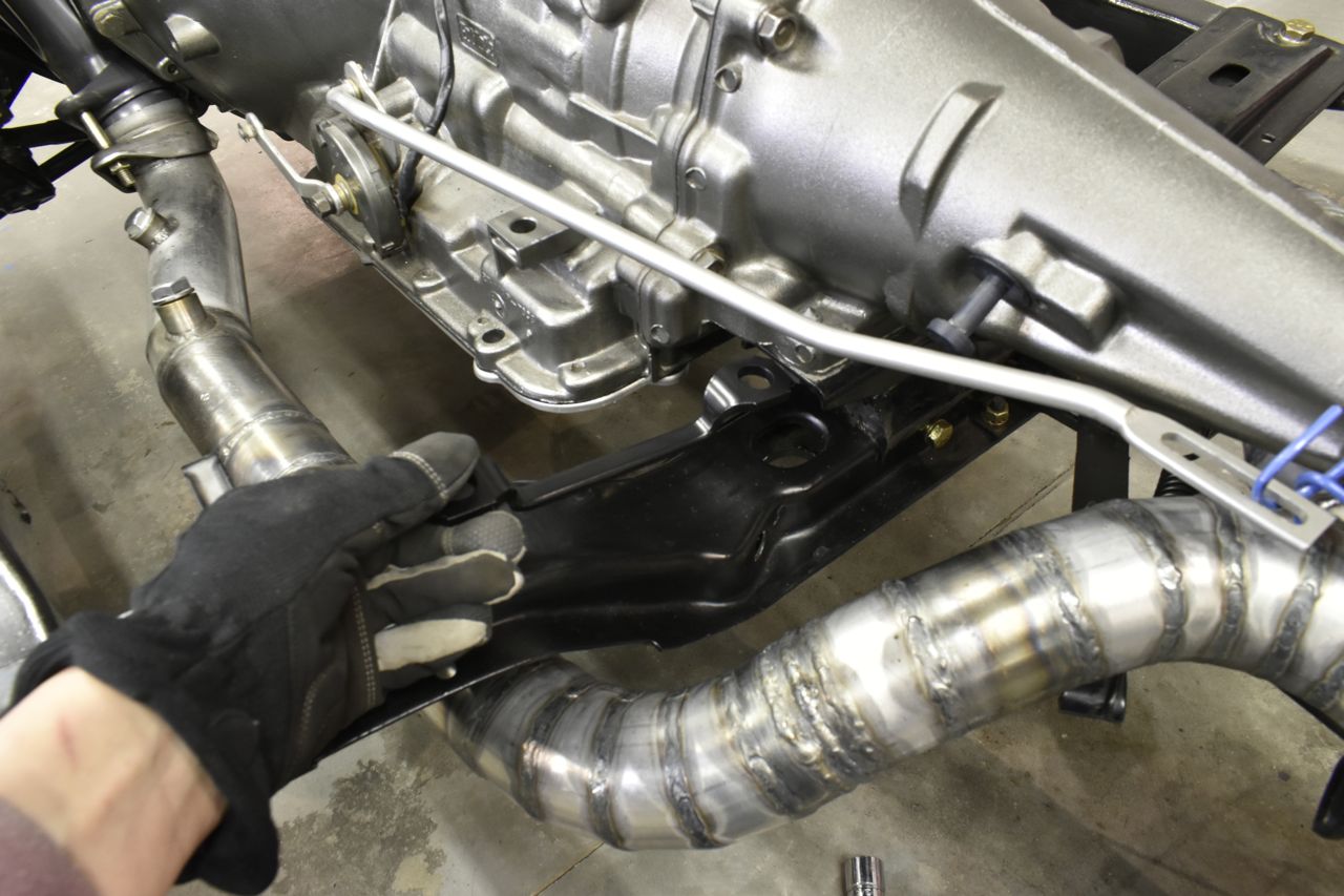 So this bar slips into the rear transmission mount and is the secondary retention should the rubber sheer. This car was missing it originally and this is why parts cars are so invaluable as trying to find these little pieces adds up really quick on places like E-Bay and even salvage yards.