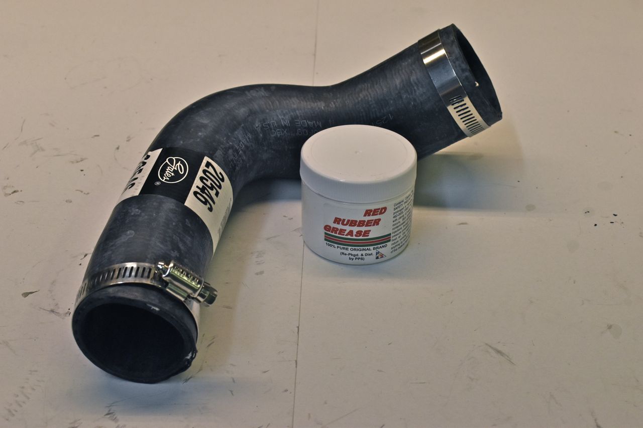 I've been using this rubber grease on hoses and it makes any future service really easy should you need to remove a hose rather than pry or damage stuck on hoses.