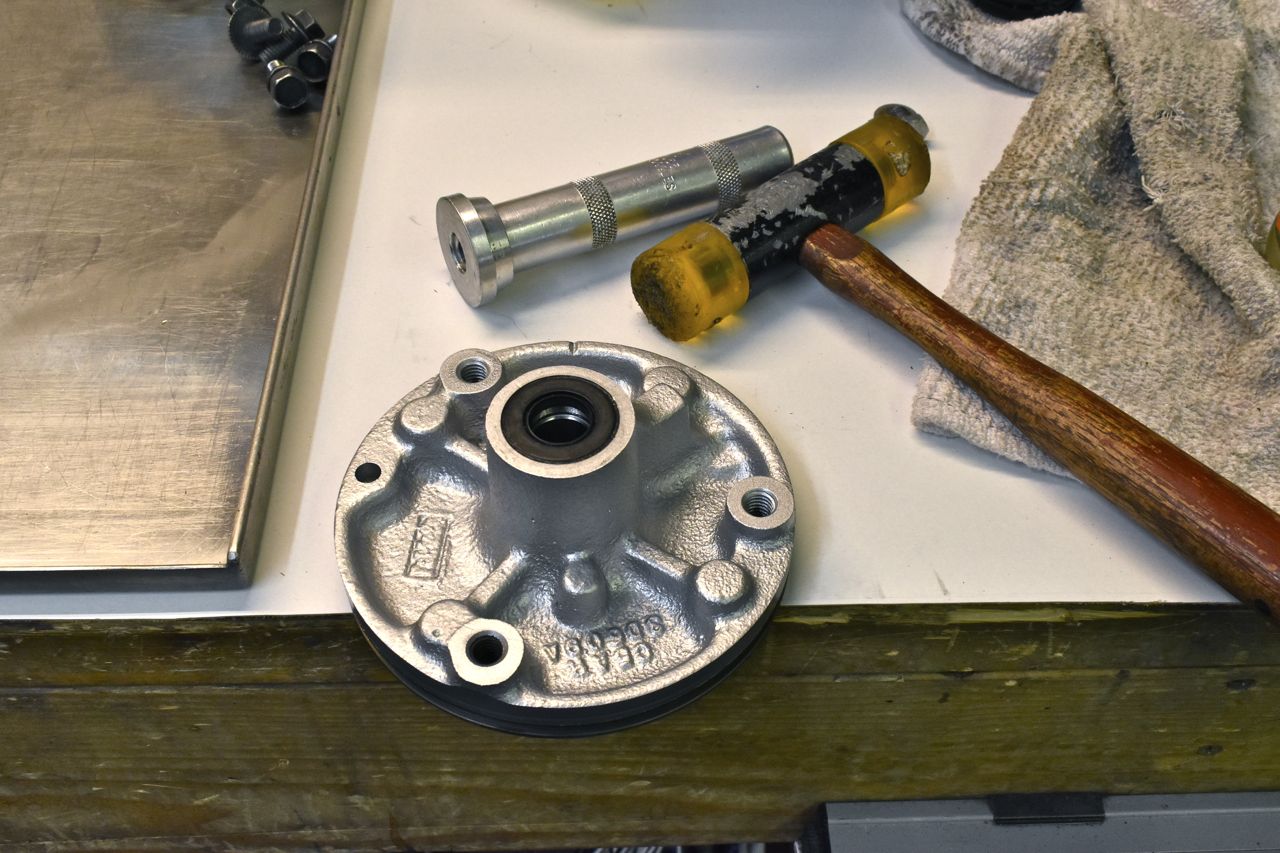 The new front seal doesn't have sealant around the perimeter like other press in seals do. So a little Ultra Black RTV was lightly applied to the seal perimeter first.