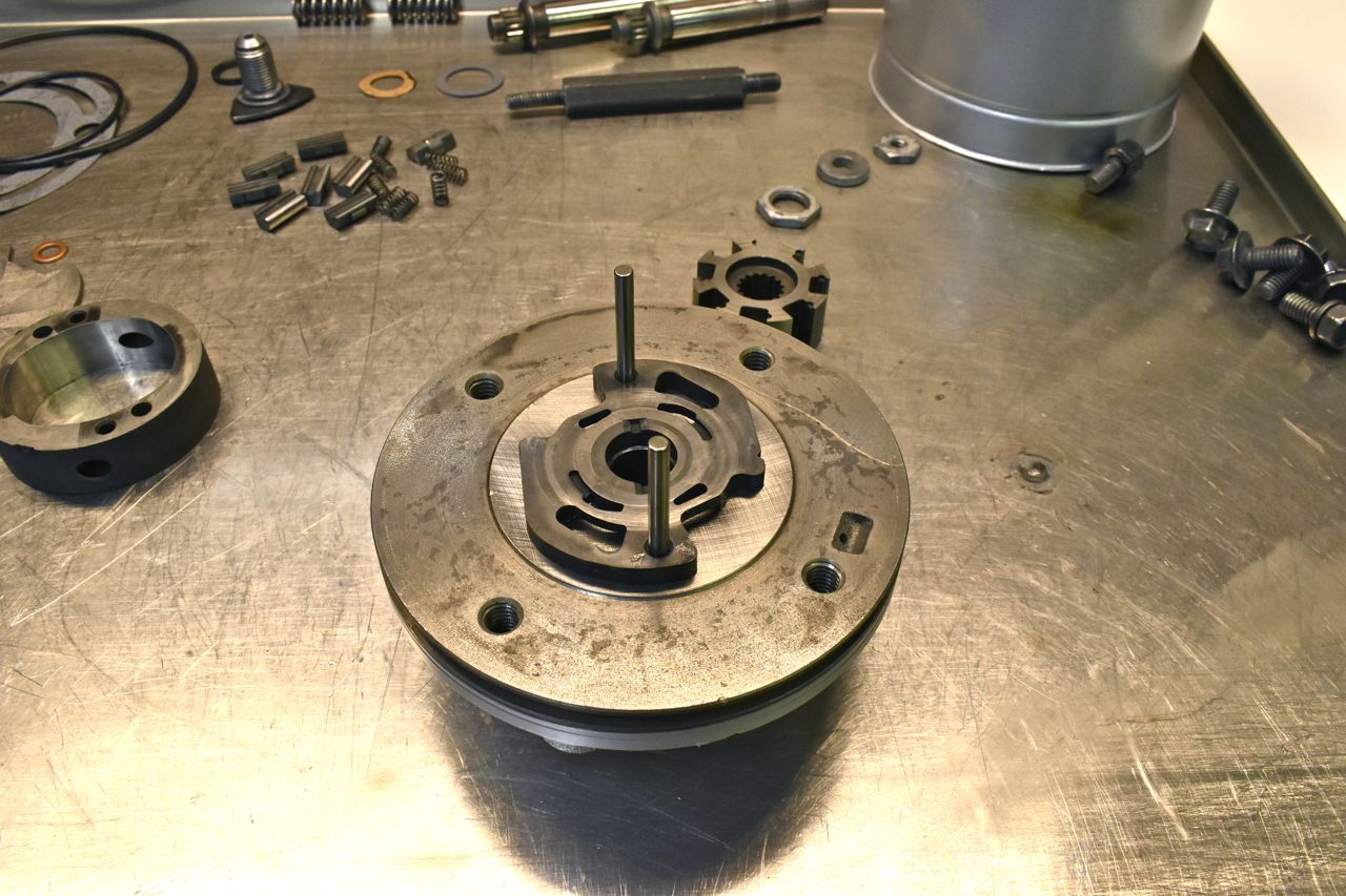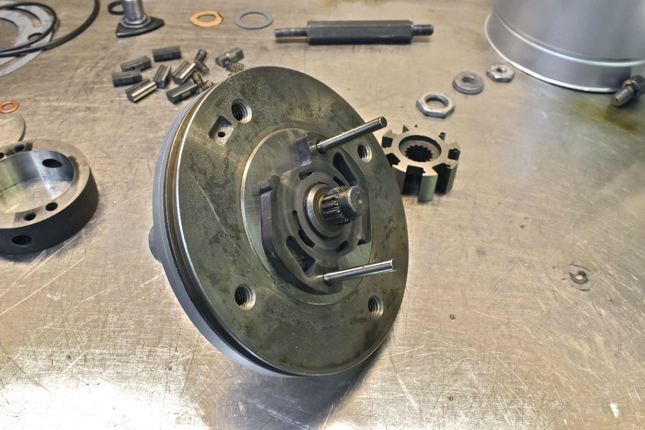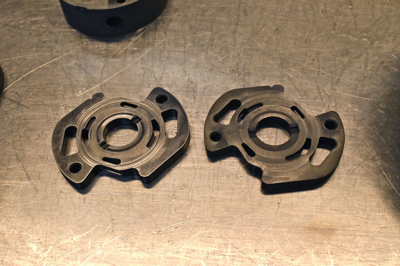 The front pump end plate. The one on the left is the donor car and it's gouged. There had to have been crap in that steering gear and even though I cleaned the pump all those years ago, some of it flushed back into the pump.